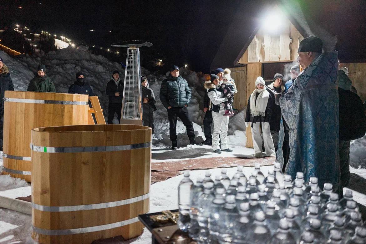 Здесь проведут молебен, освящение воды. Можно будет искупаться в купели из кедра под открытым небом, а после — переодеться в чуме и согреться чаем с шиповником и горячими пирожками.