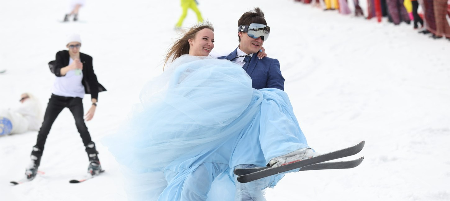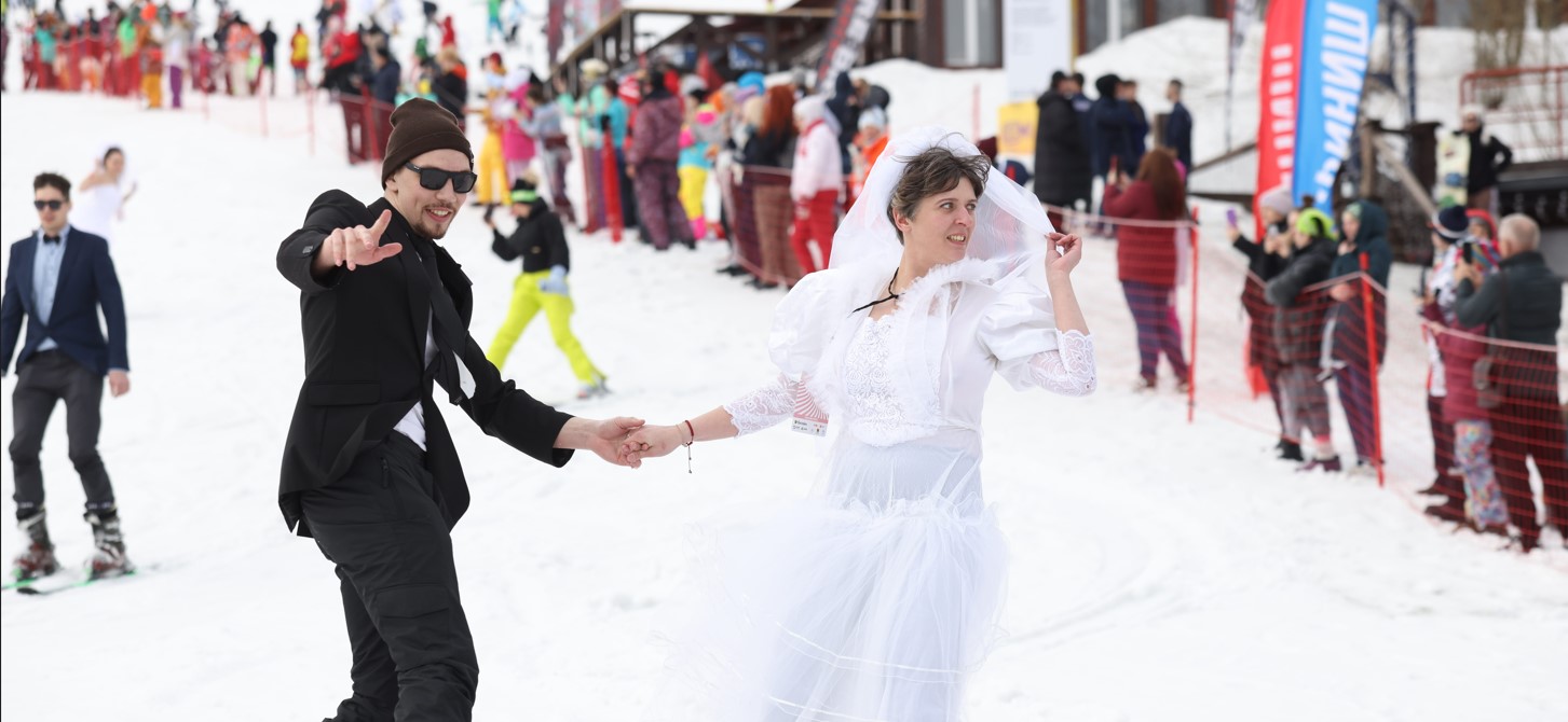 На фестивале GrelkaFest стартовали креативные спуски райдеров - первыми с горы Зеленая на лыжах и сноубордах съехали пары в свадебных костюмах. Участие в спуске приняли более 100 участников. Райдеры приходили на старт как парами их было 44, так и одиночки - в поисках своей половинки.