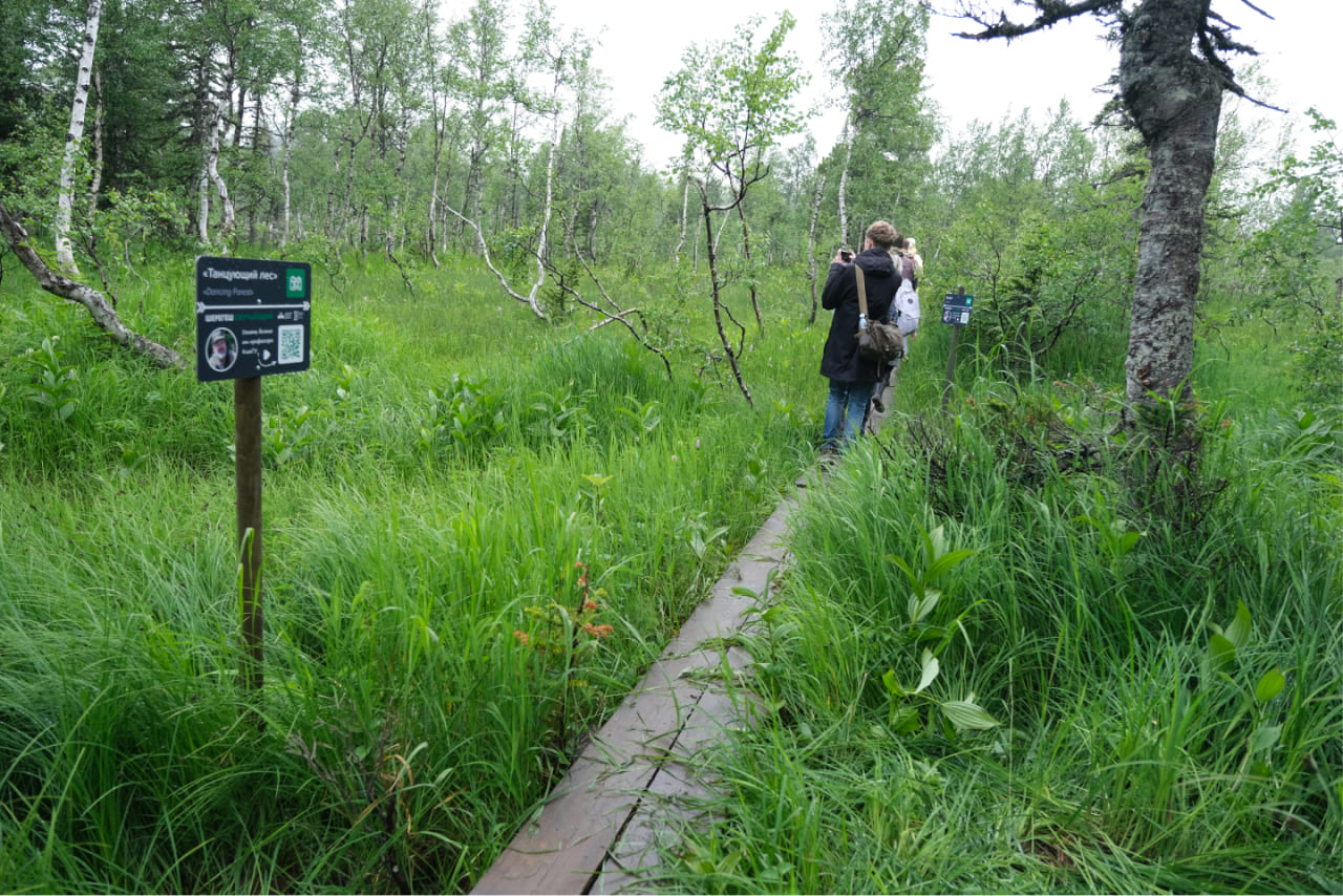 На эко-тропе в сотрудничестве с КемГУ разработали и разместили информацию с видеогидом о природе Горной Шории. Теперь туристы могут самостоятельно получить путевую информацию. Это новый подход к прогулкам в Шерегеше.