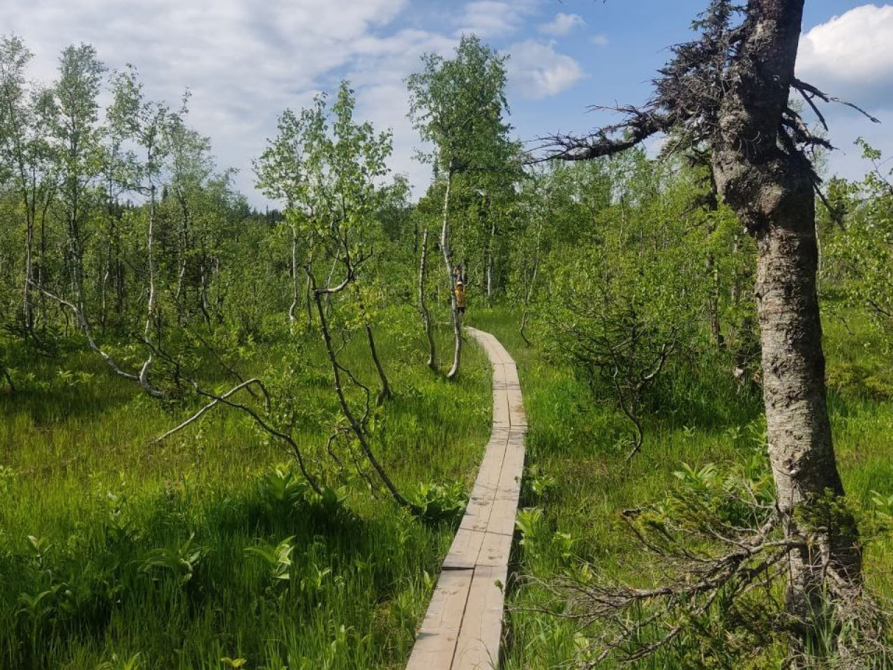 Сначала сделали главное — обновили трап по верховым болотам, чтобы не замочив кроссовки, можно было прогуляться даже с маленькими детьми до Верблюдов и обратно.