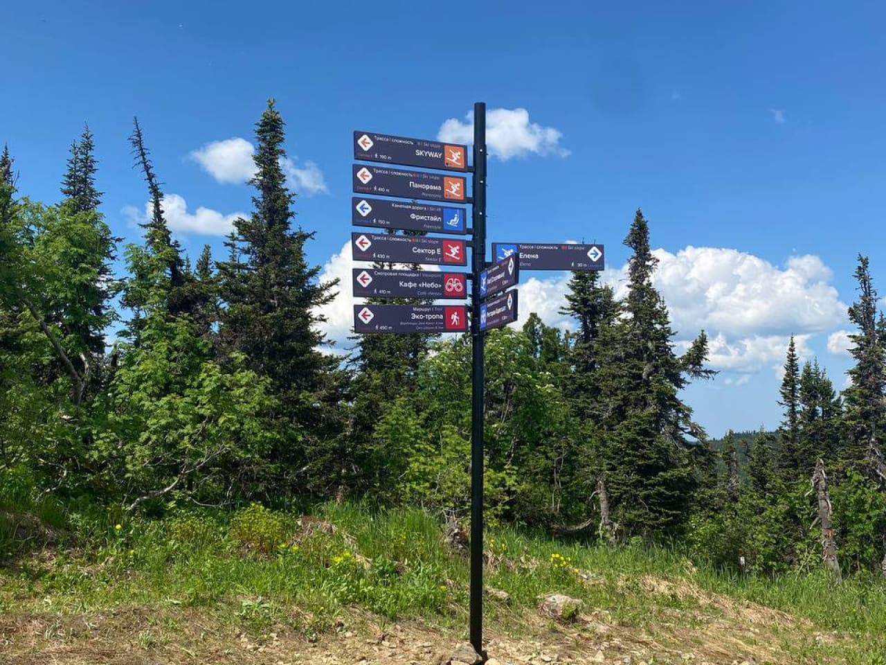 Для нас важно, чтобы туристы, приезжая на курорт, легко здесь ориентировались, знали, как и куда пройти, где и что находится. Поэтому у подножия, на вершине горы и на эко-тропе вся навигационная система связана единой логикой и визуальным стилем.