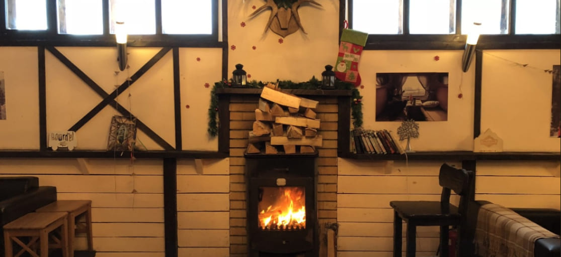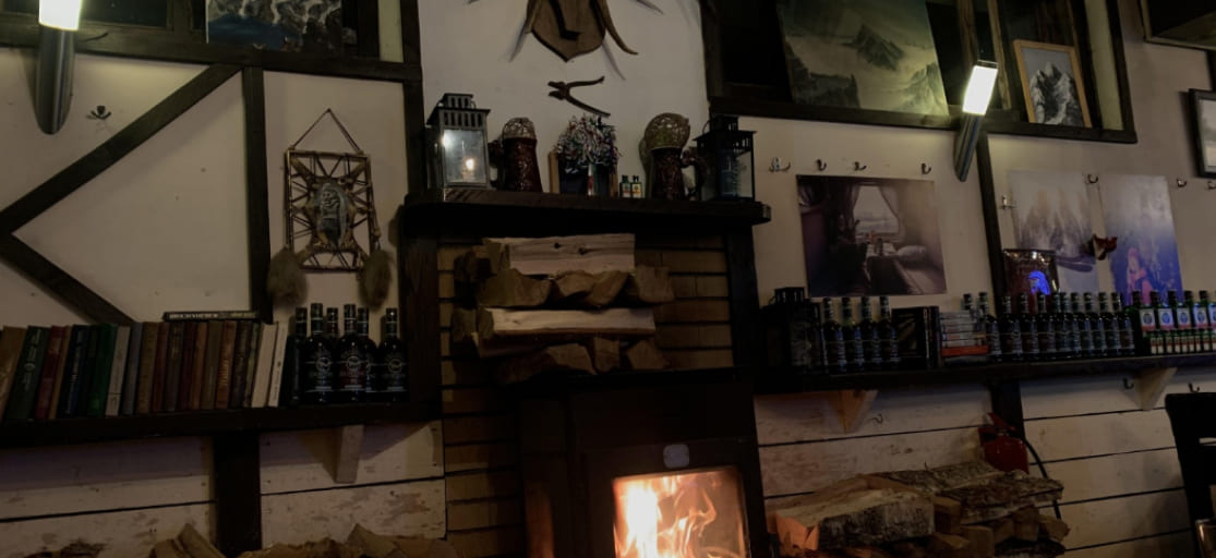 Приятный бонус камин в зале. Можно развалиться на диванчике и отдохнуть после катания.