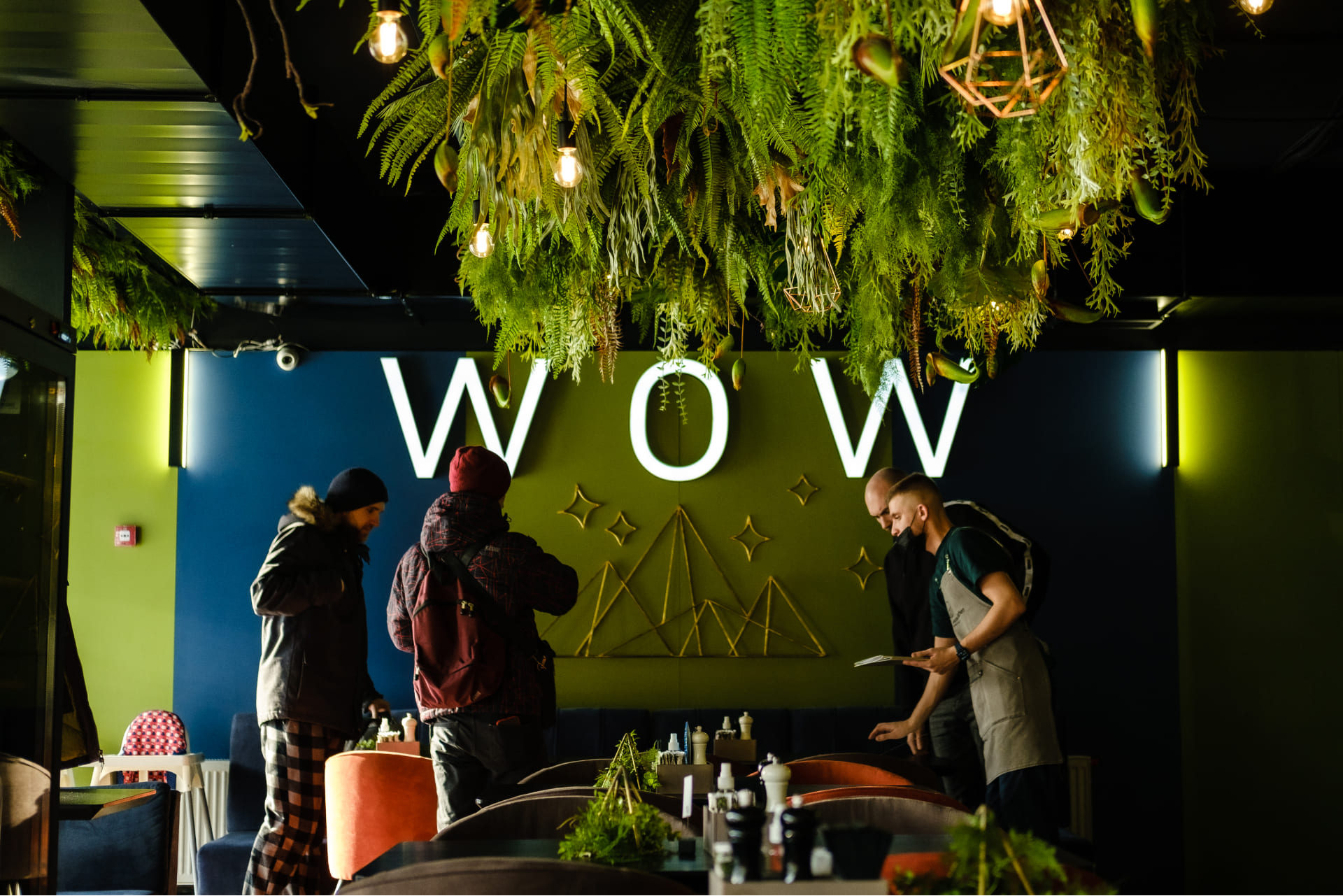 Вечнозеленые цветы и пальмовые листья в интерьере – атмосферное напоминание о том, как важно позволять себе отдыхать от повседневных забот и наслаждаться жизнью. В том числе через гастрономические ощущения. В wow.kitchen вы найдете одно из самых больших меню завтраков, авторские напитки и блюда от шефа, которые навеяны как классическими сочетаниями вкусов, так и яркой экзотикой.