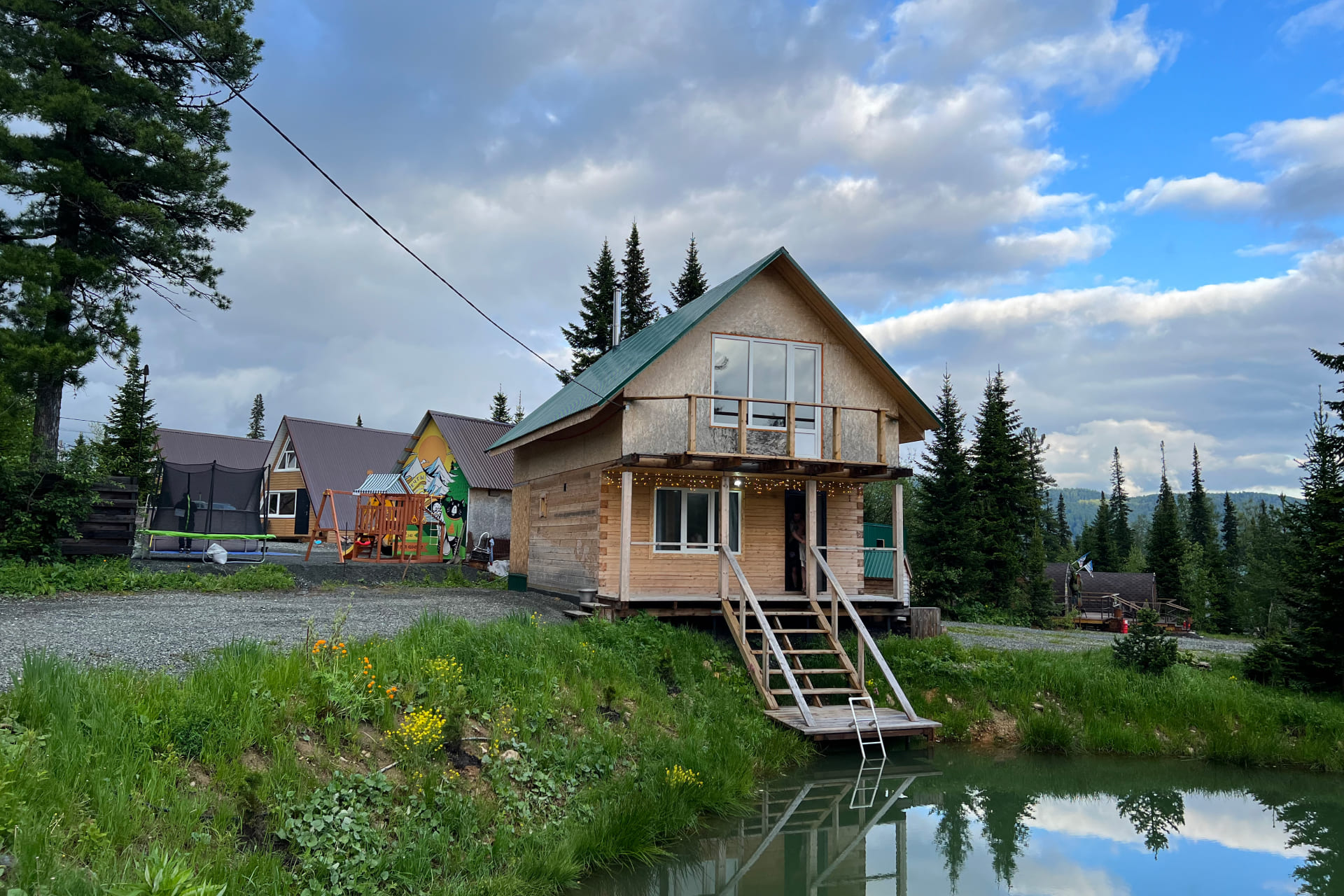 Баня с прудом