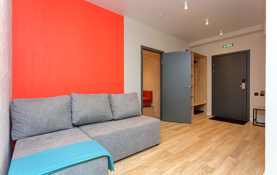 В номере: двуспальная кровать/2 односпальные кровати, прикроватные тумбочки, раскладной диван, стол, стулья, шкаф, телевизор, wi-fi, электроплита, микроволновка, чайник, холодильник, посуда; санузел с душем.