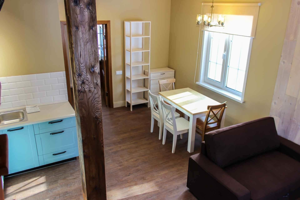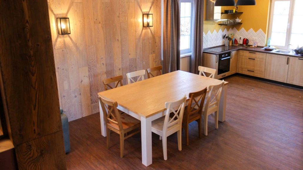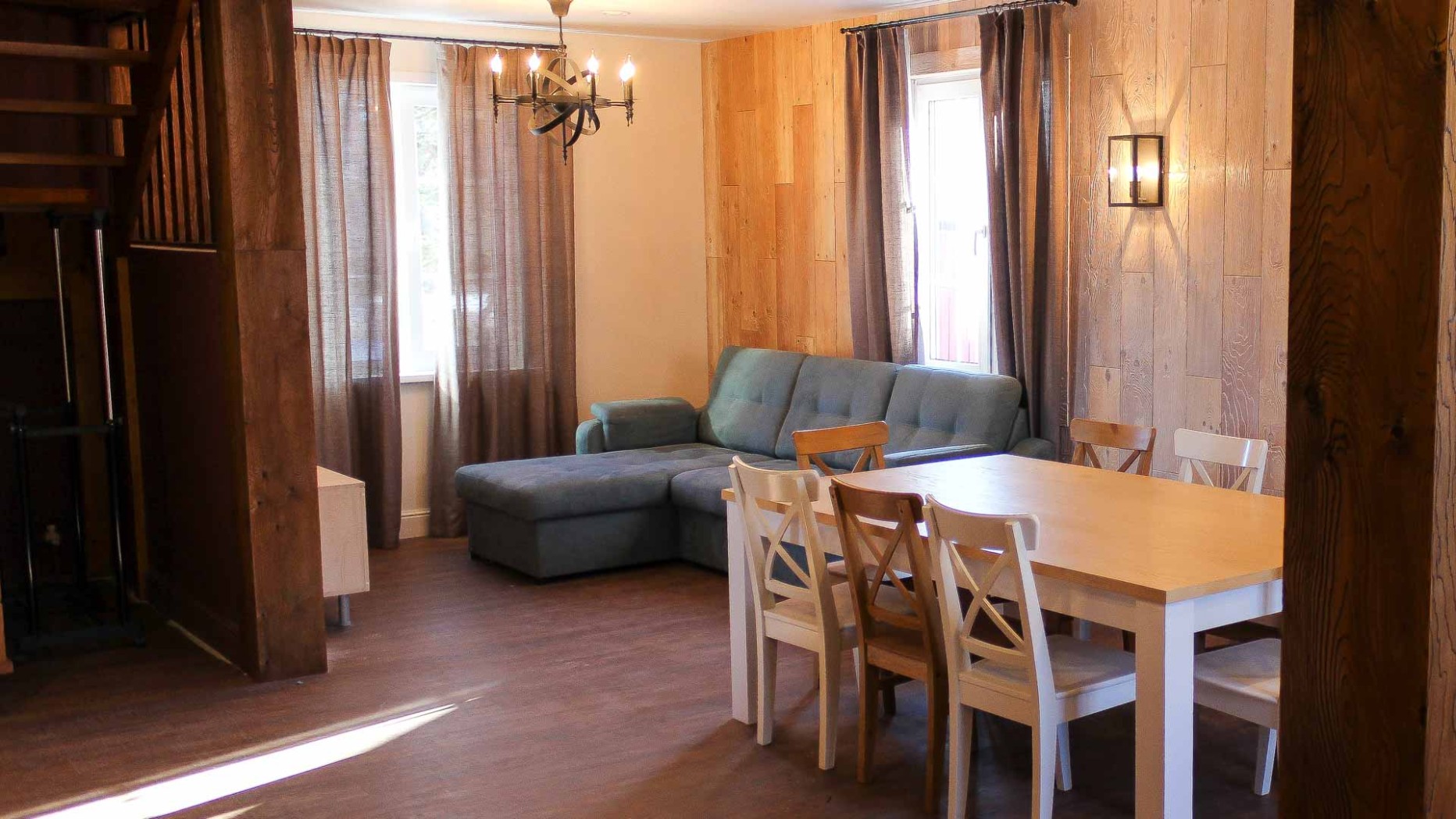 В каждом доме есть большая кухня-гостиная, оснащенная полным набором кухонного оборудования, посуды и утвари, телевизором Smart TV, беспроводным интернетом, розетками с встроенными USB гнездами для подзарядки ваших многочисленных мобильных устройств и видеокамер. В домах имеется по нескольку санузлов.В спальнях кровати с ортопедическими матрасами, чтобы после качественного катания Вы могли качественно отдохнуть.