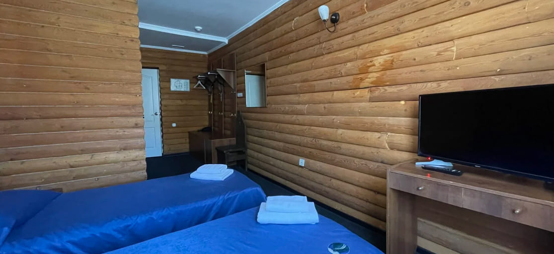 2-х спальная кровать состоящая из двух односпальных с возможностью разъединения, ТВ, кабельные каналы, вешалка для одежды, плечики, электрический чайник, фен.