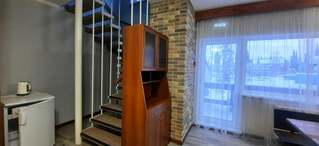 Двухэтажный трехкомнатный номер с балконом и видом на горы.