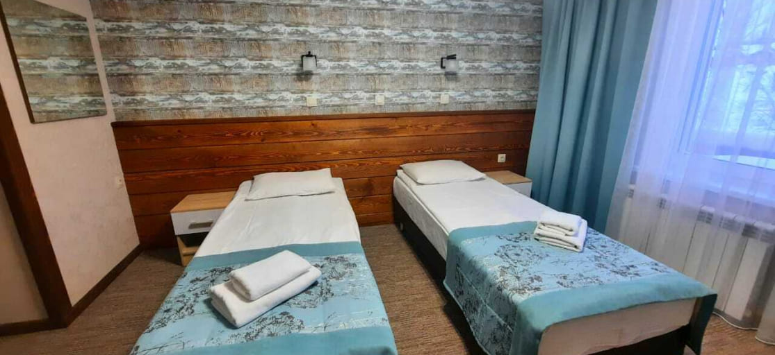 Отель расположен на склоне, красивый вид на гору Зеленая, чистый белый снег и красивый сибирский лес обеспечат вам незабываемые впечатления от отдыха в нашей гостинице.