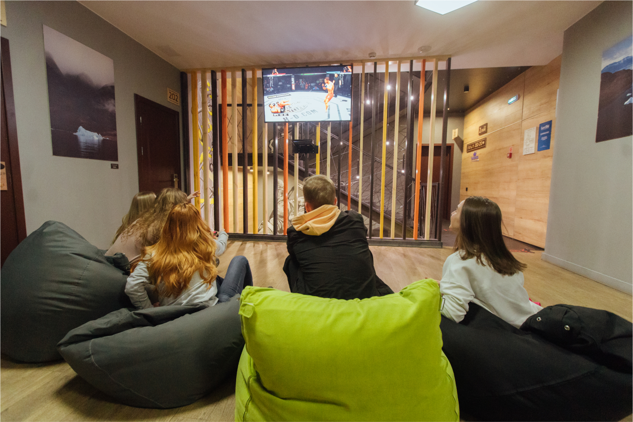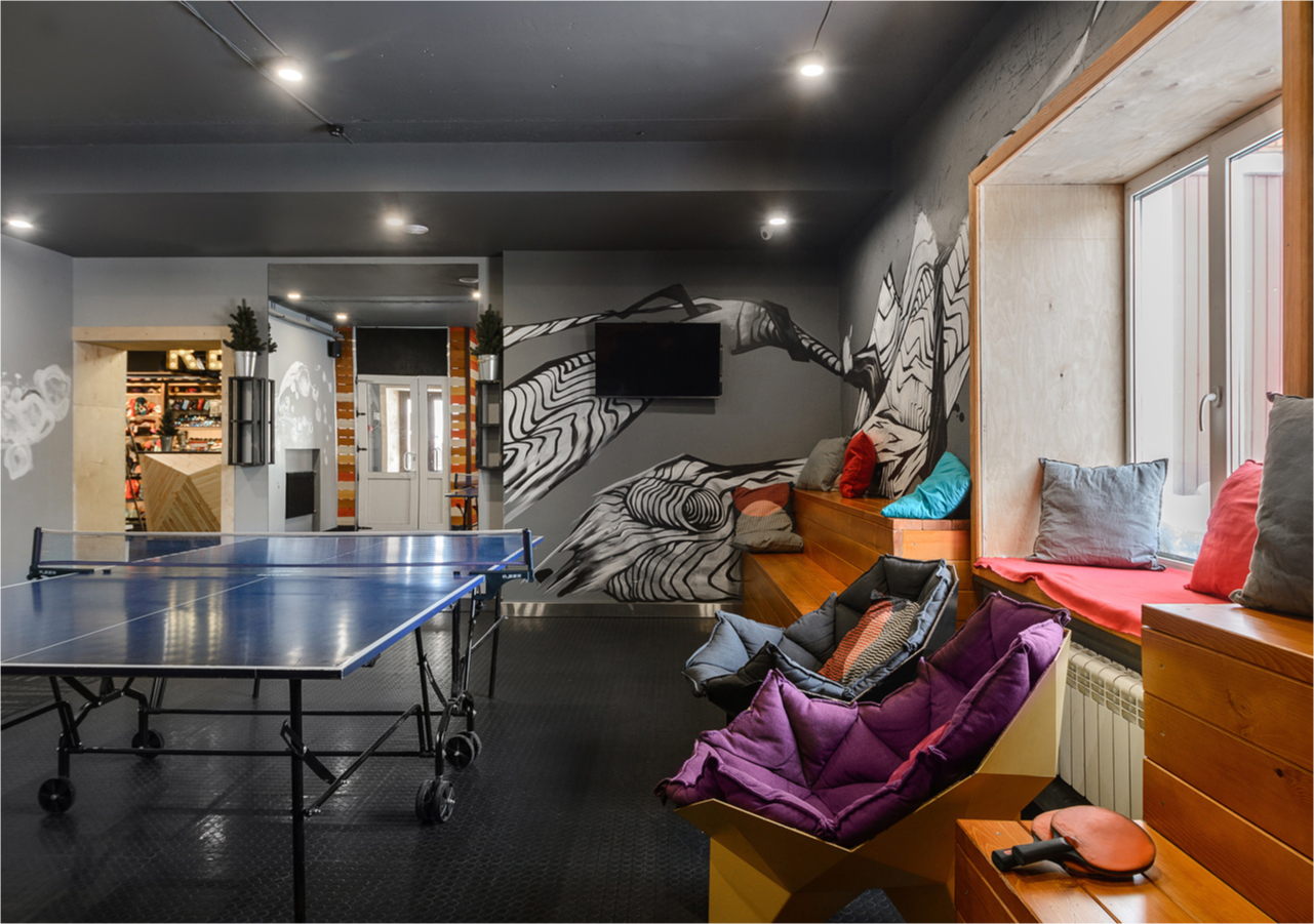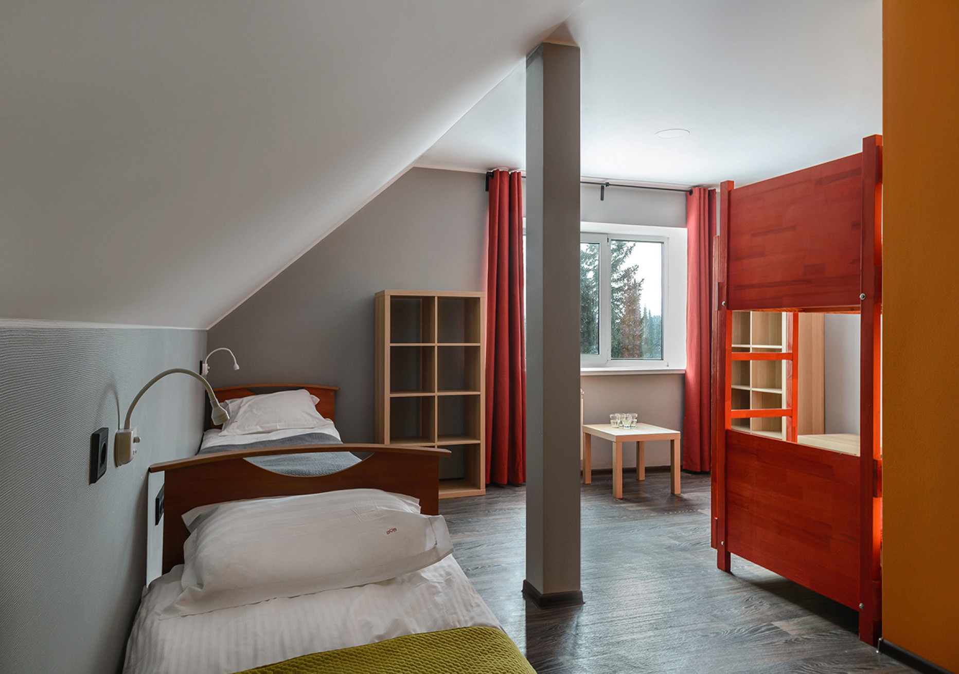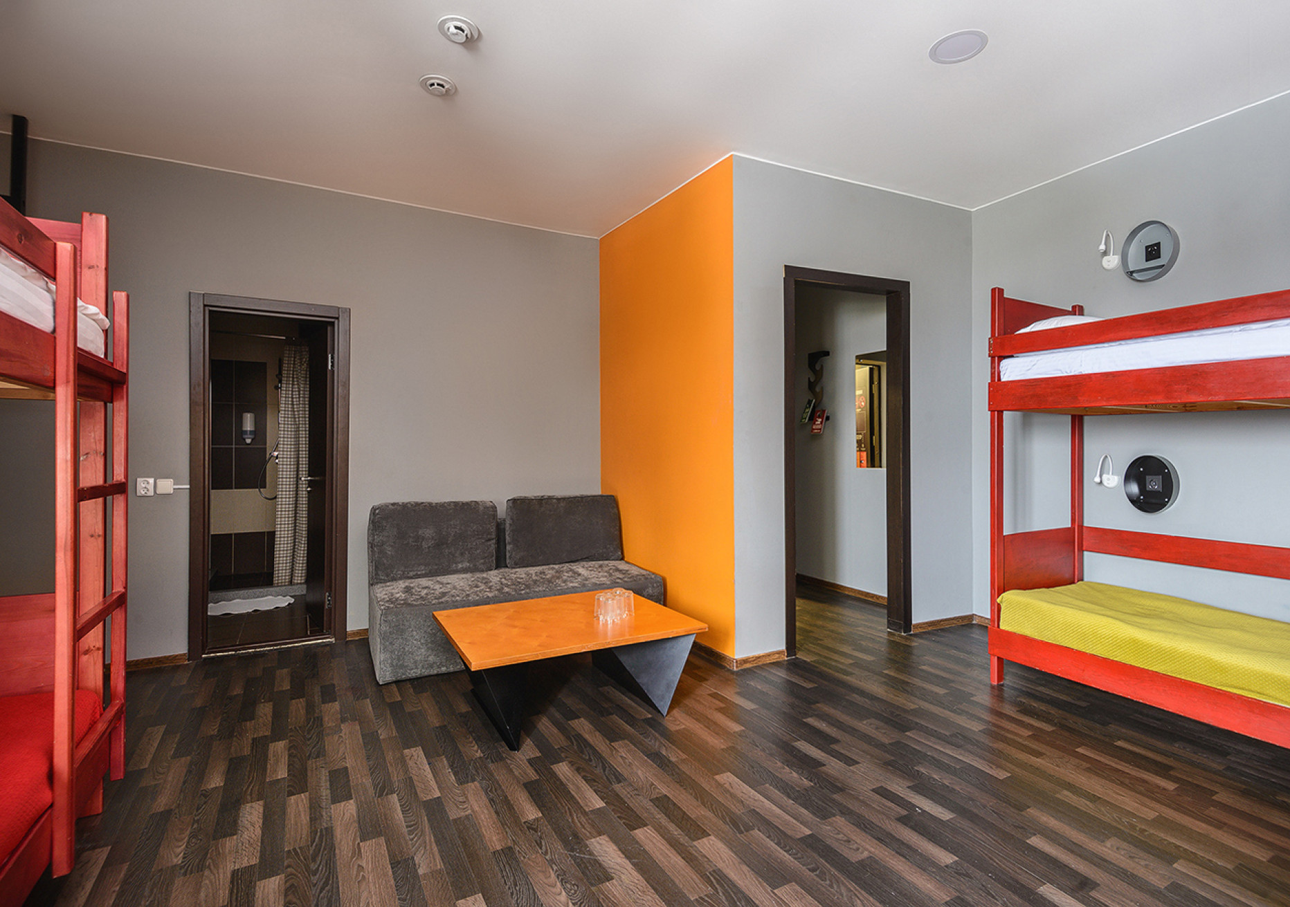 В отеле Laska мы предлагаем лучшие варианты размещения для больших и маленьких компаний. Номера категории ДОРМ – одна из фишек отеля, которая позволяет провести отдых совместно в кругу своих. При этом весело, атмосферно и с комфортом! В дормах могут разместиться от 4 до 8 человек, а блочные номера, стандарты и полулюкс идеально подойдут для двоих. На каждом этаже есть просторный холл, где вы можете устроиться на мягких пуфах, посмотреть ТВ или организовать чемпионат по настолкам, которые хранятся на ресепшн отеля. А еще поиграть в приставку или кикер на 2-м этаже.