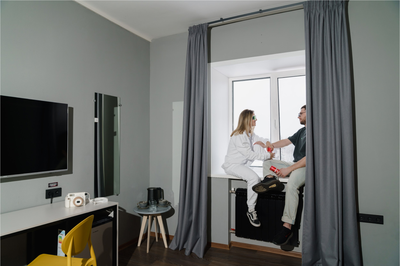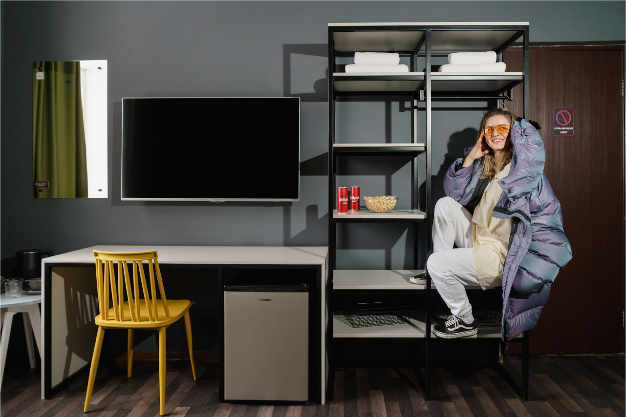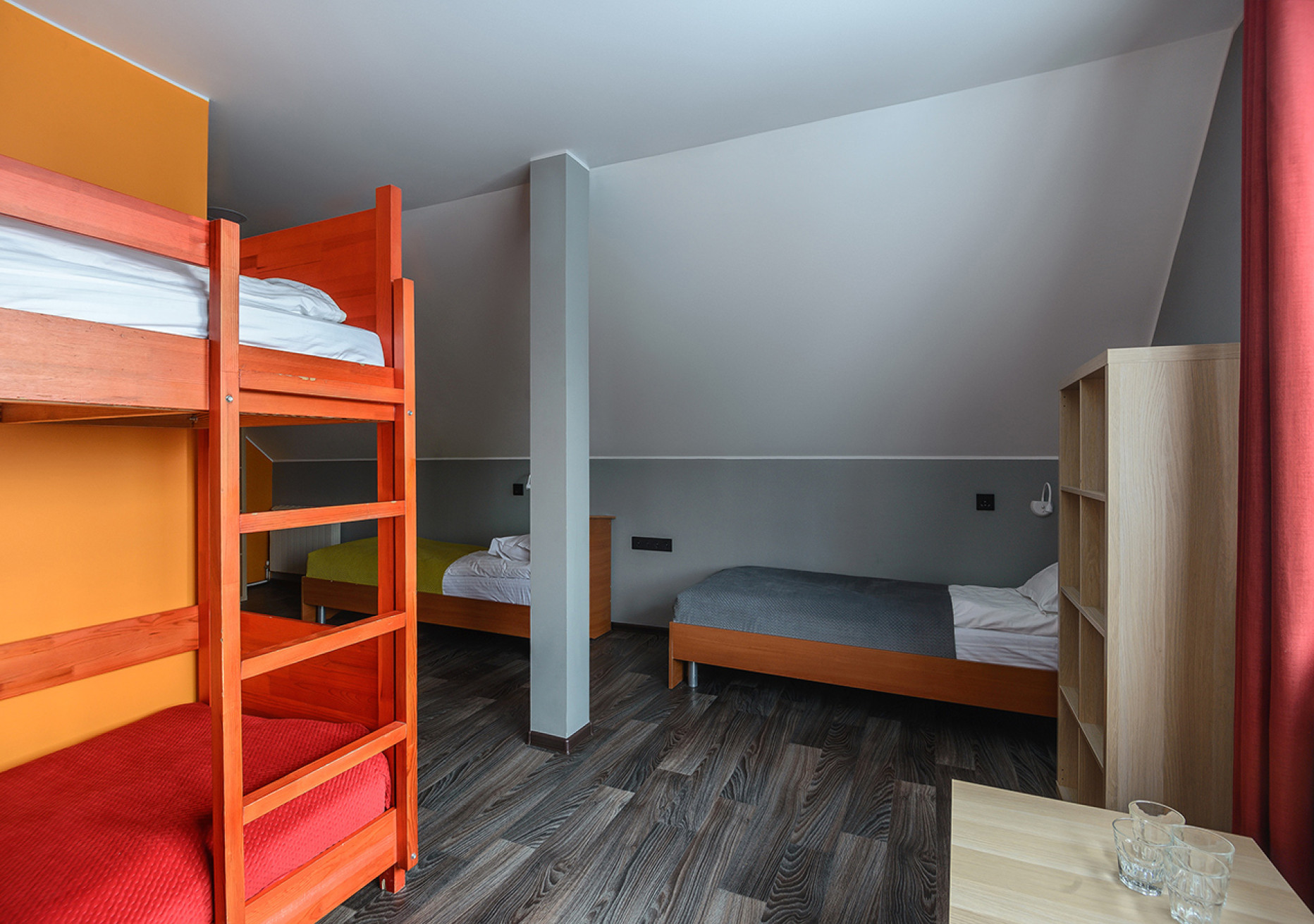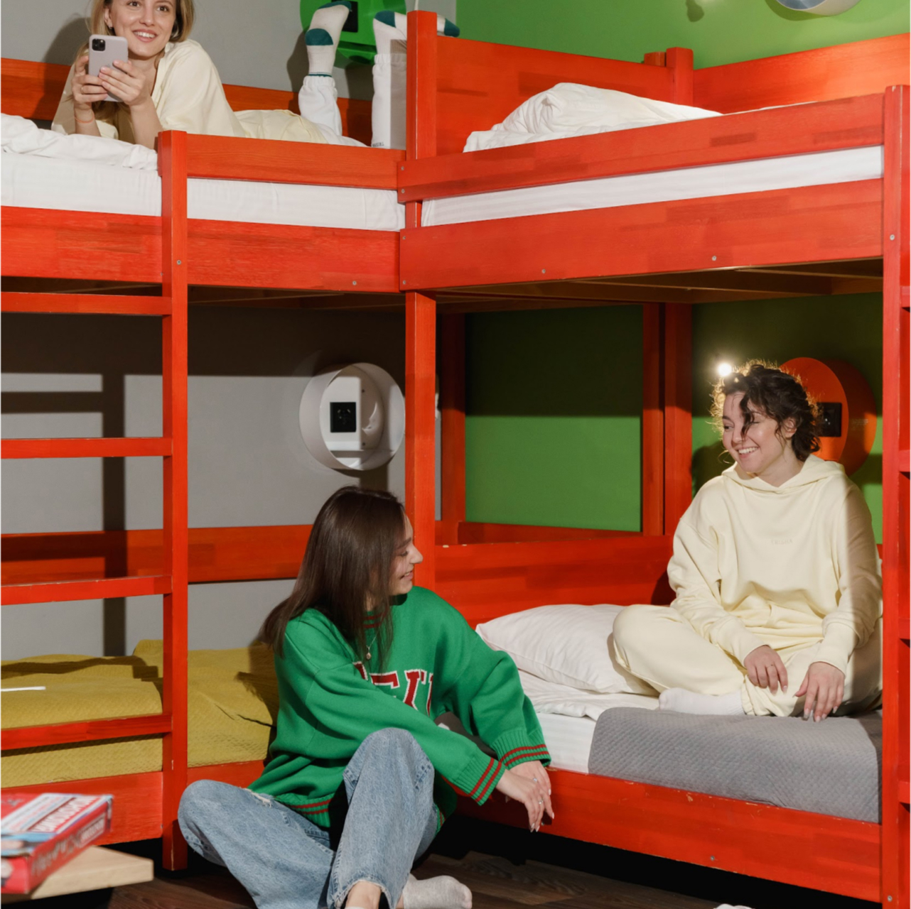 В отеле Laska мы предлагаем лучшие варианты размещения для больших и маленьких компаний. Номера категории ДОРМ – одна из фишек отеля, которая позволяет провести отдых совместно в кругу своих. При этом весело, атмосферно и с комфортом! В дормах могут разместиться от 4 до 8 человек, а блочные номера, стандарты и полулюкс идеально подойдут для двоих. На каждом этаже есть просторный холл, где вы можете устроиться на мягких пуфах, посмотреть ТВ или организовать чемпионат по настолкам, которые хранятся на ресепшн отеля. А еще поиграть в приставку или кикер на 2-м этаже.