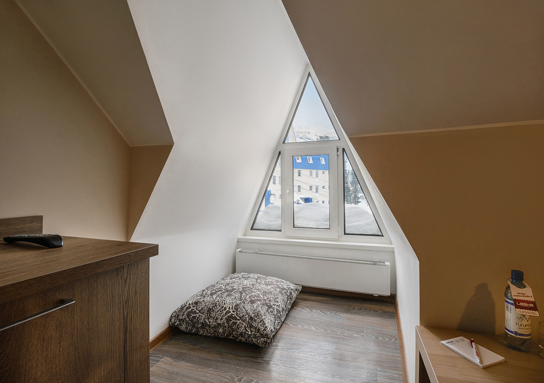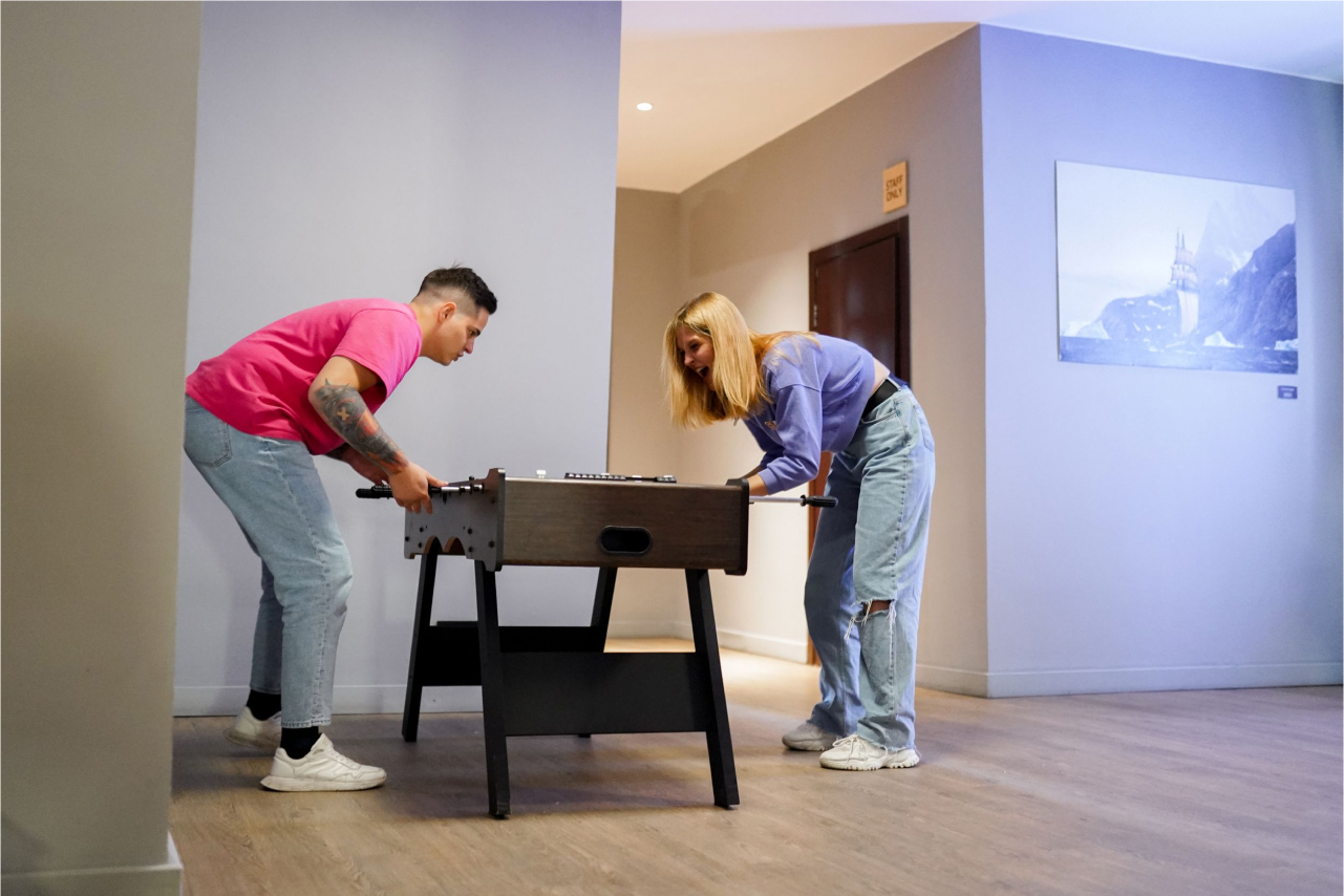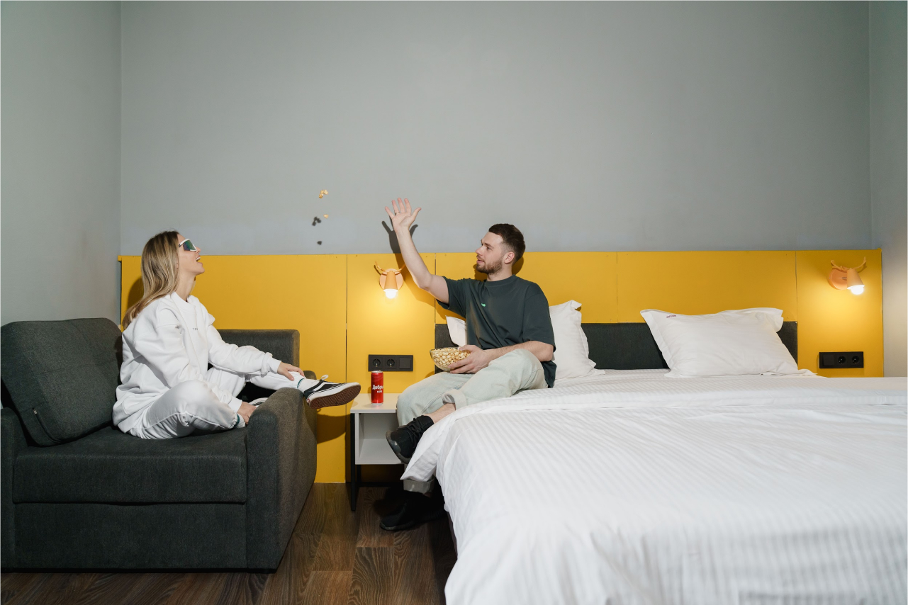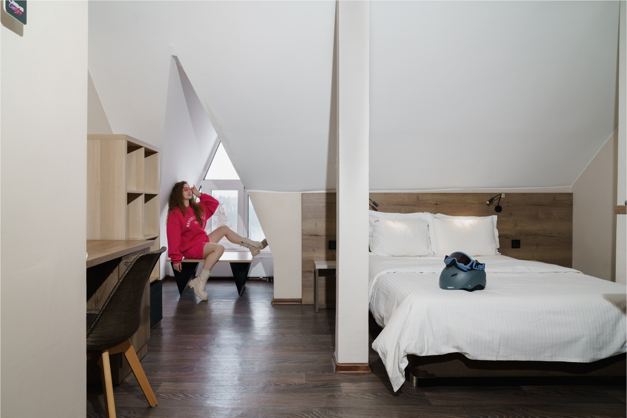 В отеле Laska мы предлагаем лучшие варианты размещения для больших и маленьких компаний. Номера категории ДОРМ – одна из фишек отеля, которая позволяет провести отдых совместно в кругу своих. При этом весело, атмосферно и с комфортом! В дормах могут разместиться от 4 до 8 человек, а блочные номера, стандарты и полулюкс идеально подойдут для двоих. На каждом этаже есть просторный холл, где вы можете устроиться на мягких пуфах, посмотреть ТВ или организовать чемпионат по настолкам, которые хранятся на ресепшн отеля. А еще поиграть в приставку или кикер на 2-м этаже.