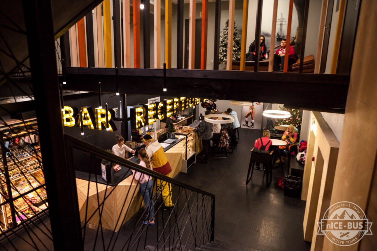 Если проголодаетесь, можете здесь же сходить в кафе-кулинарию Солянка, которую обожают райдеры всего Шерегеша за уют, большие завтраки, сытные обеды и вкусные ужины по приятным ценам. Или спуститься в Lobby bar, чтобы перекусить или выпить вкусный коктейль за большой барной стойкой. Ну а вечером обязательно забегайте к ребятам в Clever Irish Pub за настроением. У голок Ирландии в горах порадует вас весельем, драйвовыми квартирниками и пенным пивом!