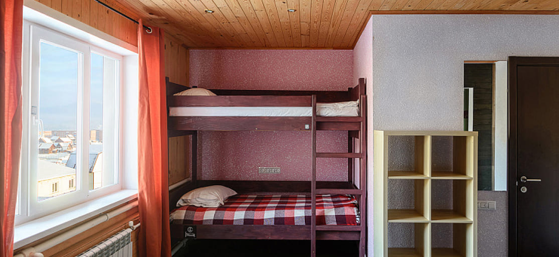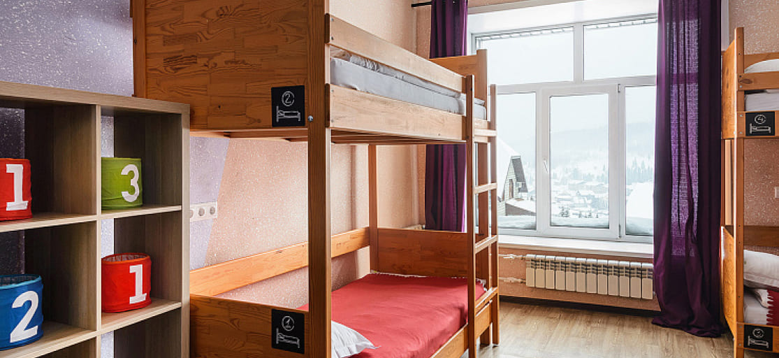 Номер упрощённой комплектации. В номере: две или три двухъярусные кровати повышенной комфортности (ширина спального места 110 см). Санузел: раковина, унитаз, душ, зеркало. Площадь номеров: 19-31 кв.м.