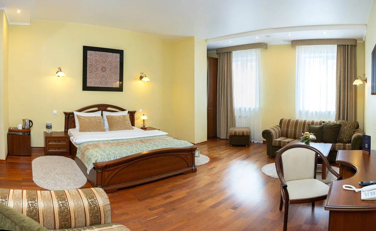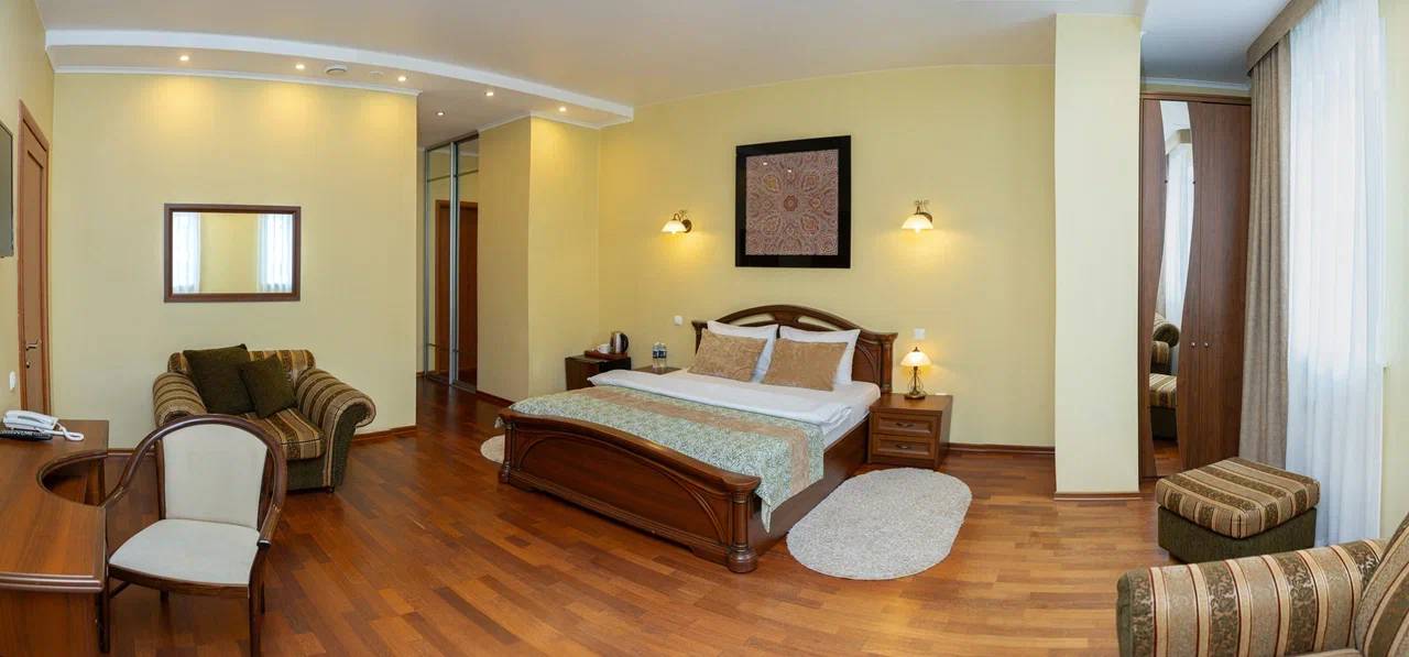 Номера категории Люкс идеально подходят для людей, любящих простор и комфорт. Двухкомнатные номера с гостиной, спальней и помещением для сушки верхней одежды и ванной комнатой.