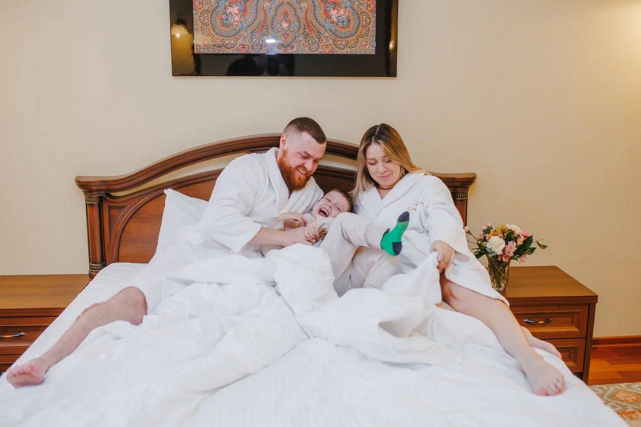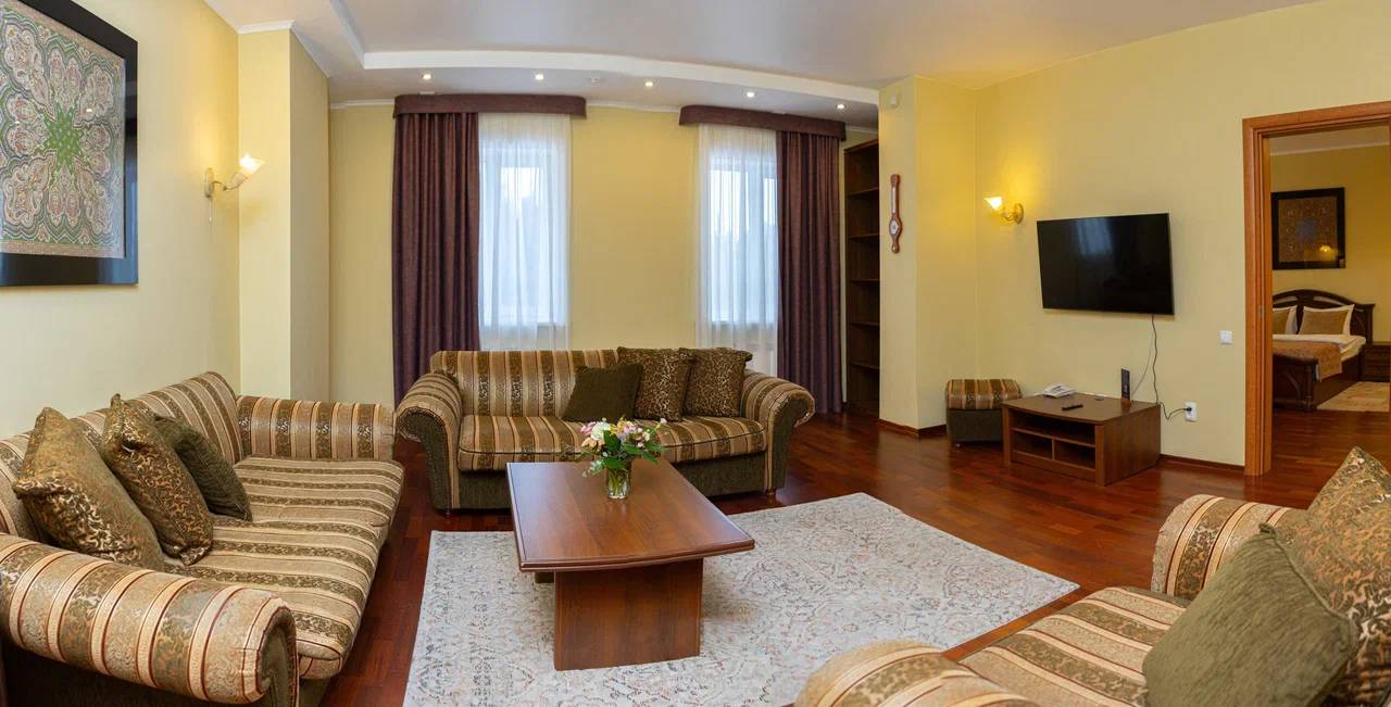 Номера категории Люкс Семейный созданы для семей с 1-2 детьми и для небольшой компании друзей. Двухкомнатные номера с гостиной комнатой, зоной отдыха и спальней.