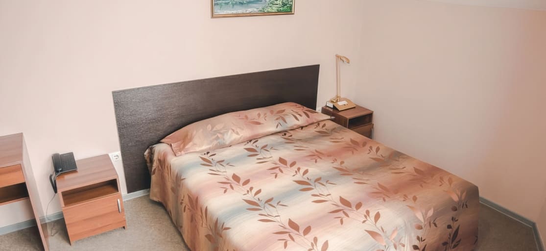 Однокомнатный номер: 1 двуспальная или 2 односпальные кровати; диван (в некоторых номерах), телевизор, телефон, душ, туалет, фен.