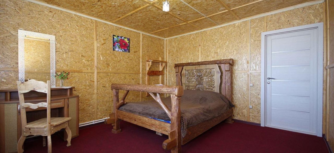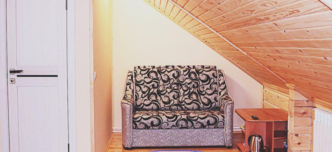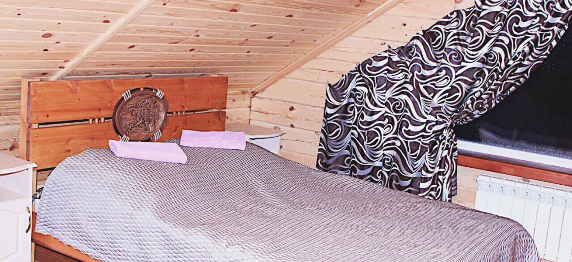 отдельный вход на второй этаж / 4 номера / В каждом номере одна большая 2-х спальная кровать, тумбочки, настольные лампы / малый диван / средний телевизор / маленький холодильник / чайник, микроволновая печь, столик / вешалка для вещей / санузел (WC+ душевая кабина+фен+туалетные принадлежности) / полотенца / возможность подстановки раскладушки