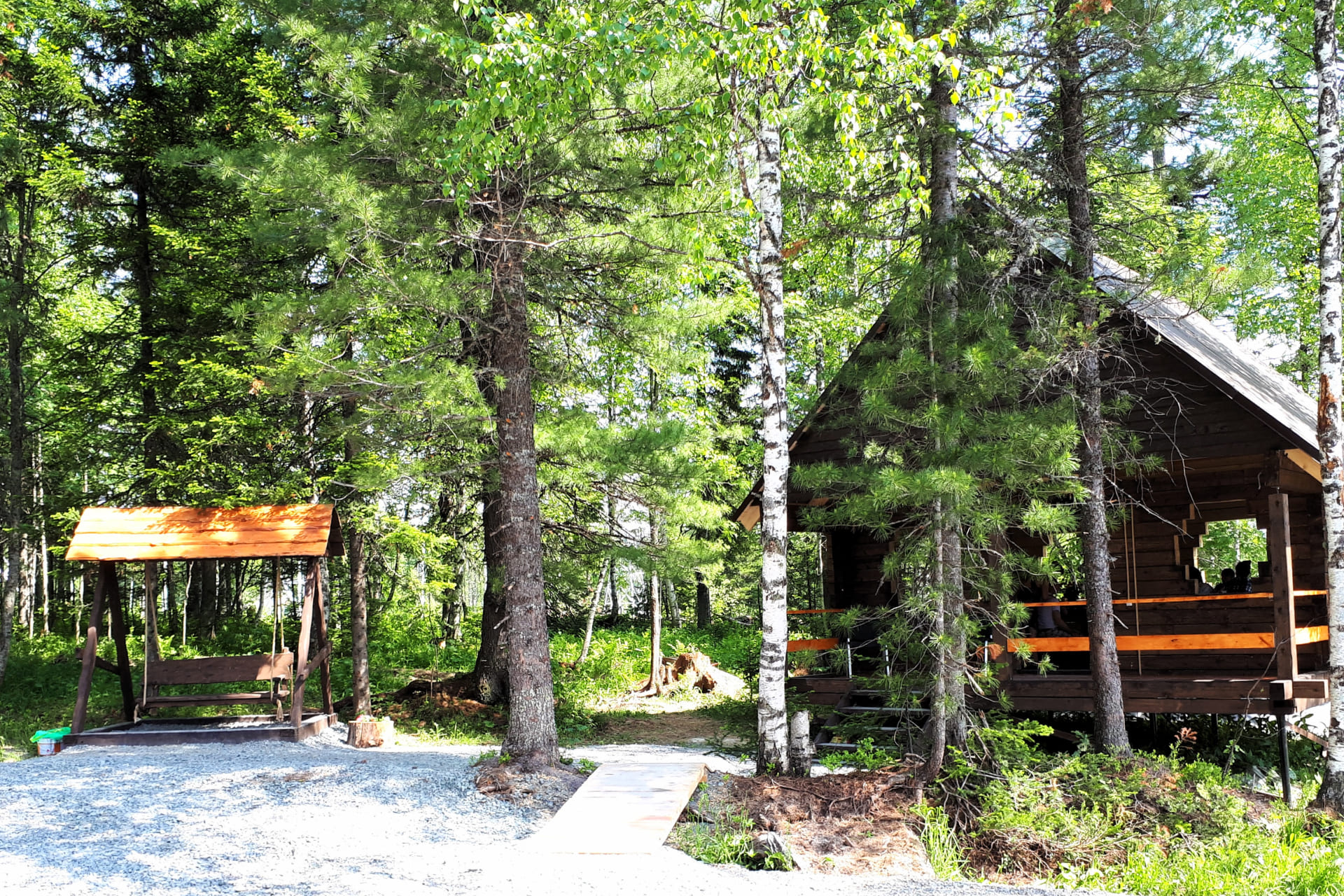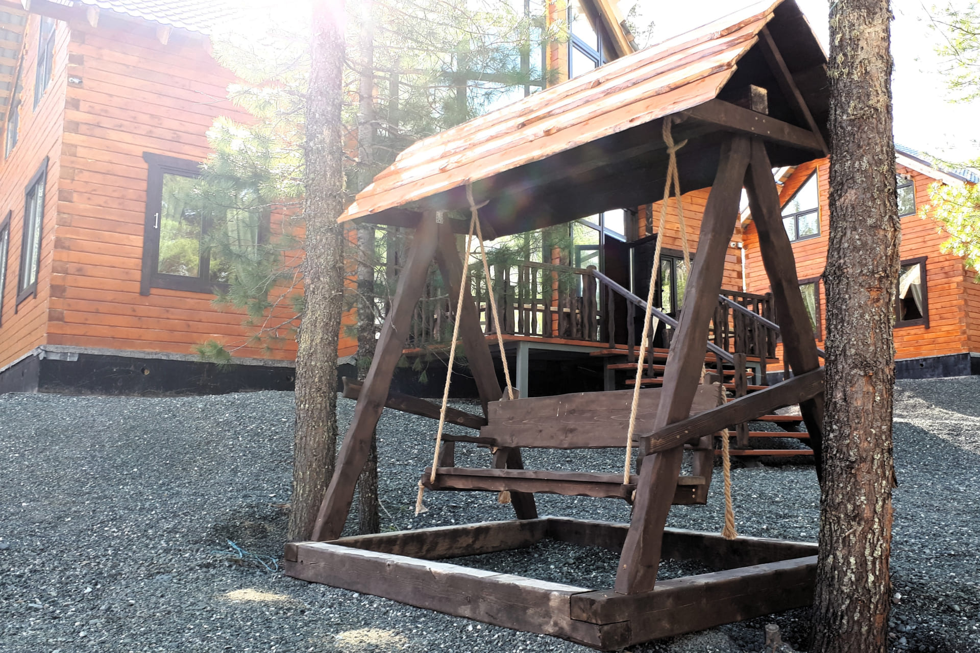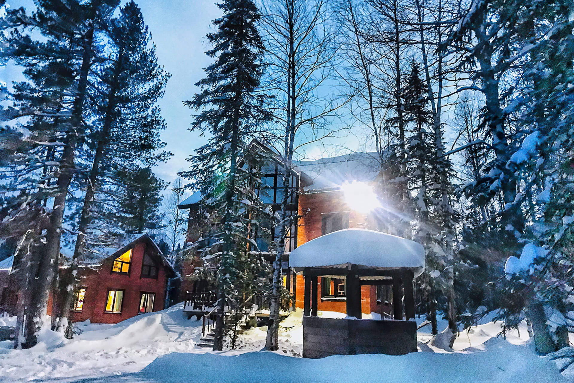 Размещение: На территории расположены 3 двухэтажных коттеджа, которые разделены на 2 половины, вмещающие компанию от 6 до 8 человек, каждая из которых имеет свой отдельный вход, место для размещения горнолыжного инвентаря, кухню-гостиную, 2 сан.узла с душевой кабиной, 3 спальни на втором этаже (2 спальни с 2-х спальными кроватями, 1 спальня с двумя 1-спальными кроватями), балкон.