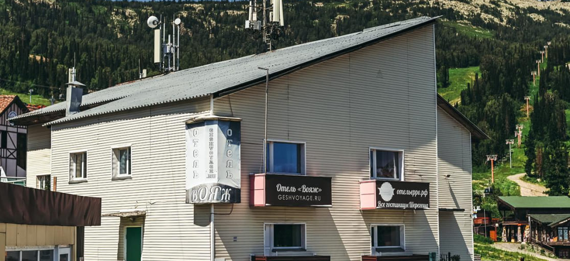 Комфортабельный отель "Вояж" находится на горе Зеленая (Шерегеш) в непосредственной близости от подъемников. Отель состоит из одного двухэтажного корпуса. Из окон отеля открывается картина на горнолыжную трассу, спуск от отеля ведет прямо к школе горнолыжного катания. К услугам гостей кафе, комната для хранения горнолыжного инвентаря, автостоянка
