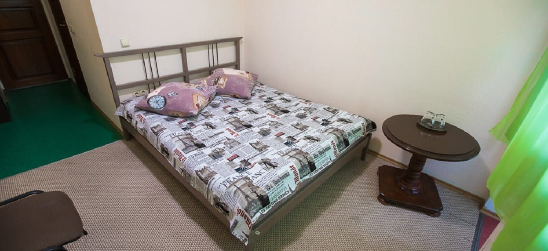 Однокомнатный номер:двуспальная кровать, столик, 2 стула, телевизор, душ, туалет -