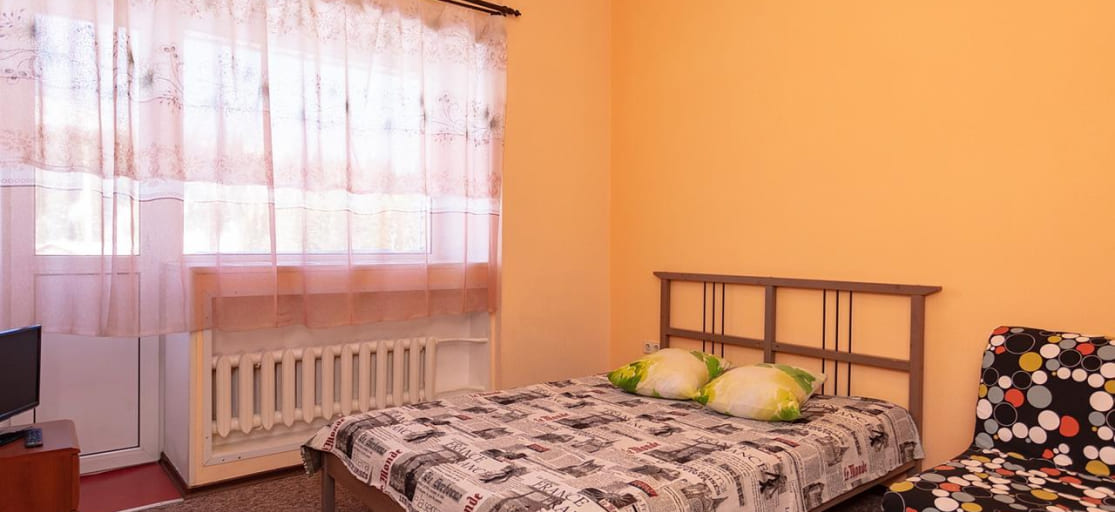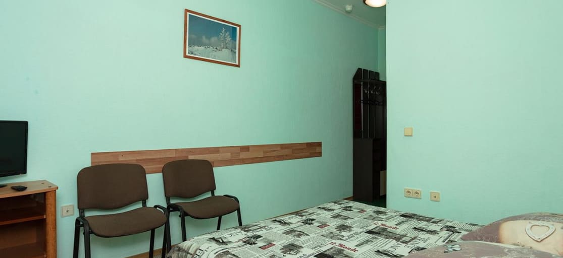 Стандартный номер с одной двухъярусной и одной односпальной кроватью. В номере: телевизор, холодильник, душ, туалет
