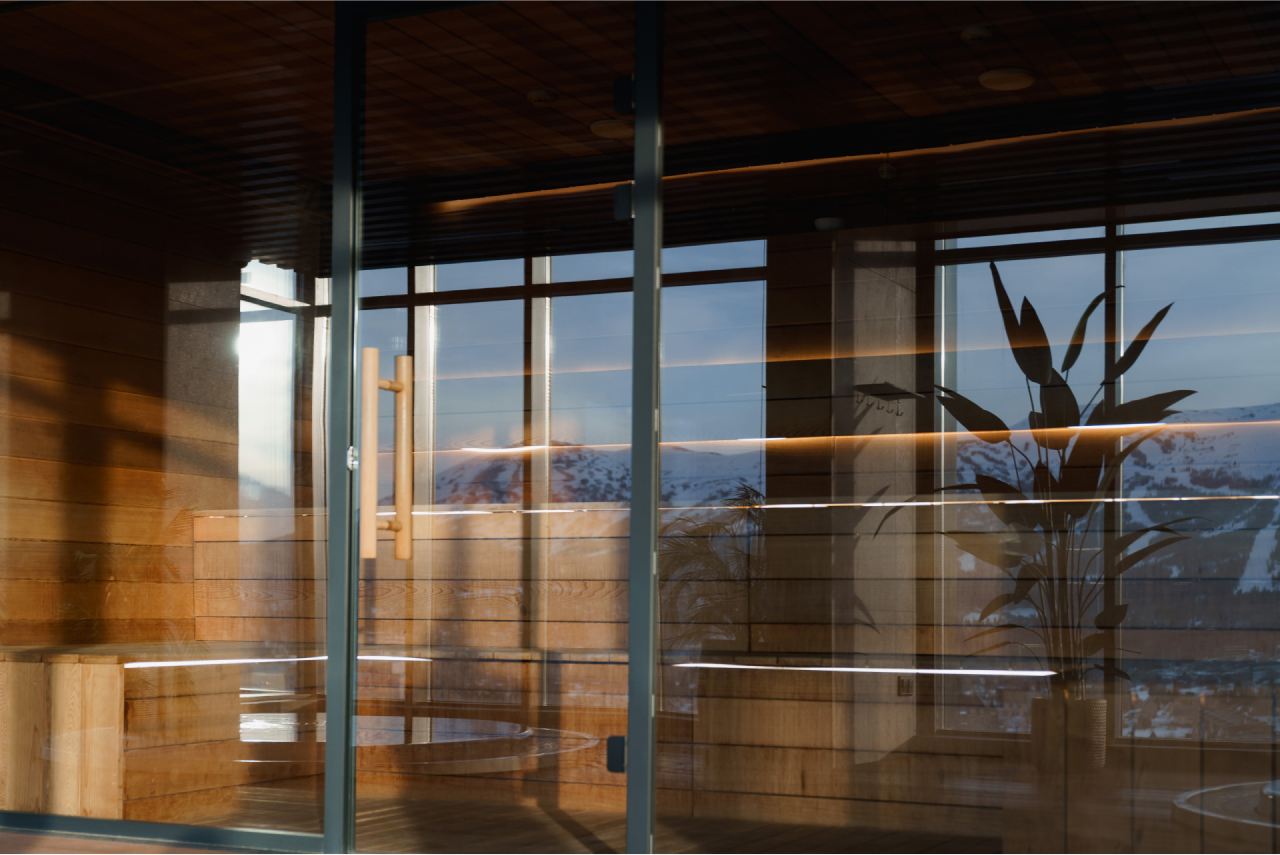 Это райский уголок, который стал одной из самых долгожданных новинок для гостей курорта. Здесь мы соединили стильный интерьер, роскошные спа-зоны, приятную музыку и панораму, от которой захватывает дух. Нет ничего приятней, чем погреться в кедровой сауне после катания, отдохнуть в хамаме или понежиться в джакузи с морской водой, глядя на снежные пейзажи за окном.