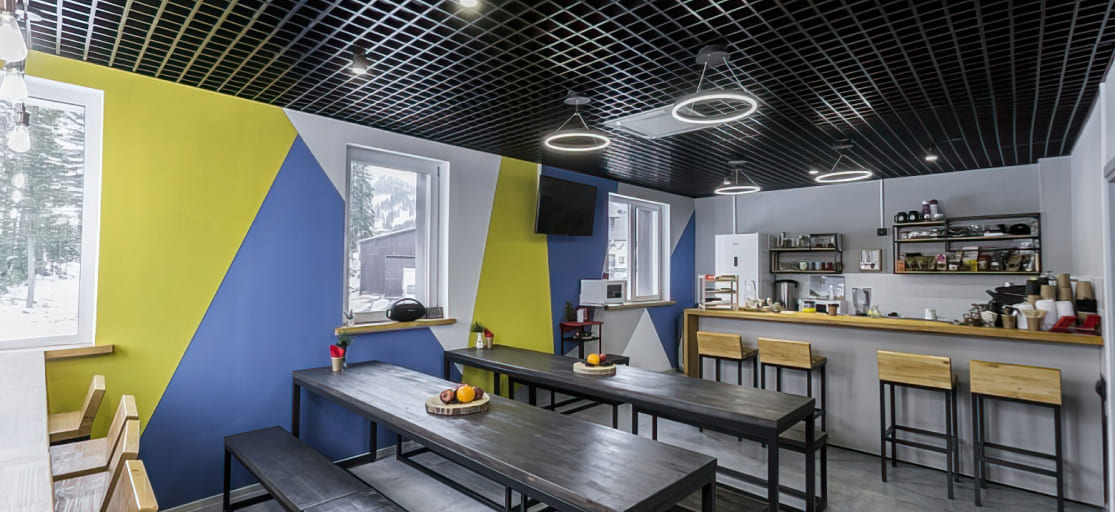 Для комфортного отдыха гостей предусмотрены сушильная комната, индивидуальные камеры для хранения личных вещей, а также место для хранения снаряжения. Особый уют и атмосферу гостеприимства придают здесь кофейня и рабочее пространство на 2 этаже, где любой желающий может провести свободное время с шикарным видом на снежный Шерегеш.