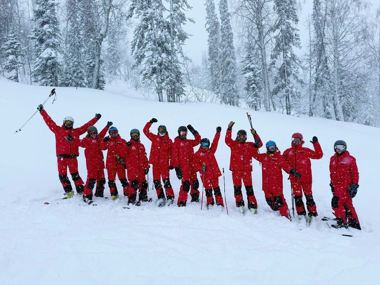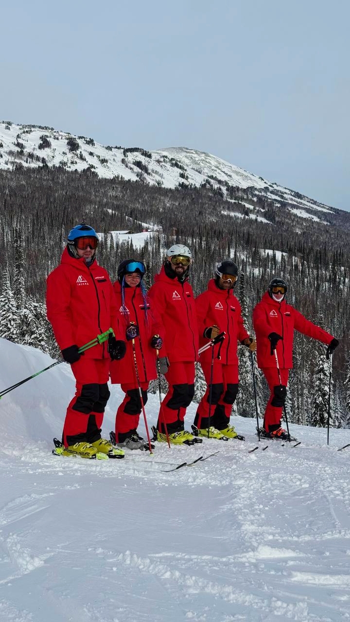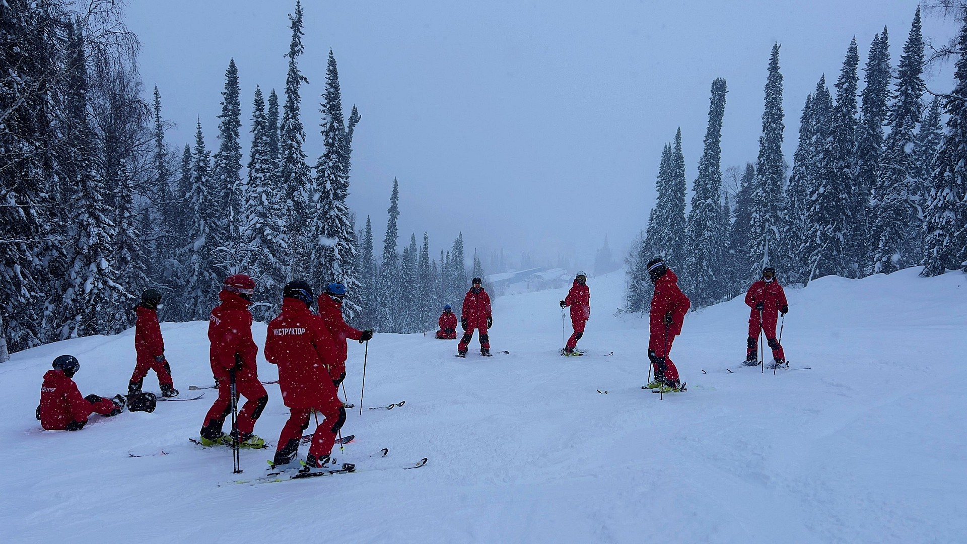 Наших инструкторов легко найти на склоне, благодаря единой красной форме.