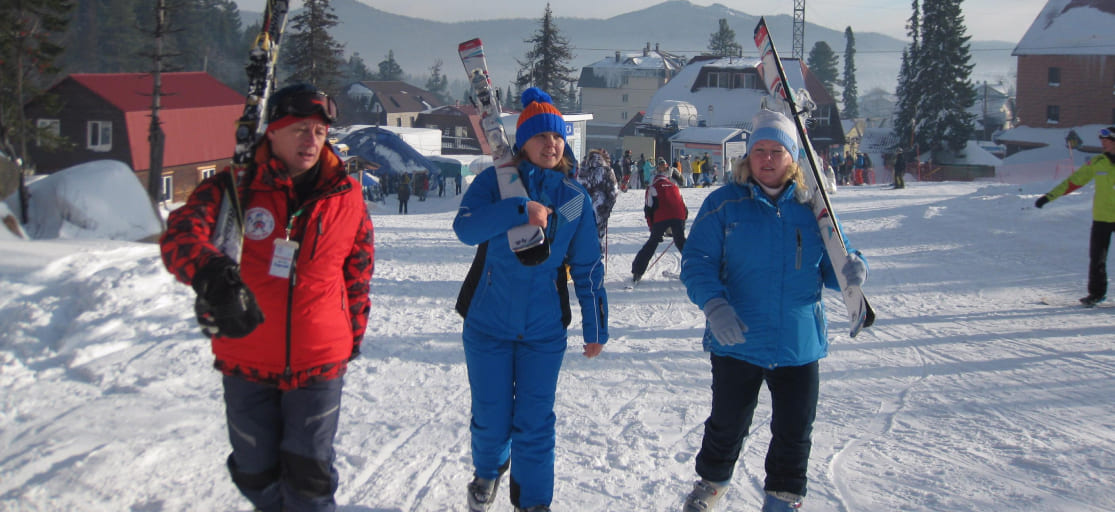 Обучение взрослых и детей: горные лыжи - с 3 лет, сноуборд - с 6-7 лет.