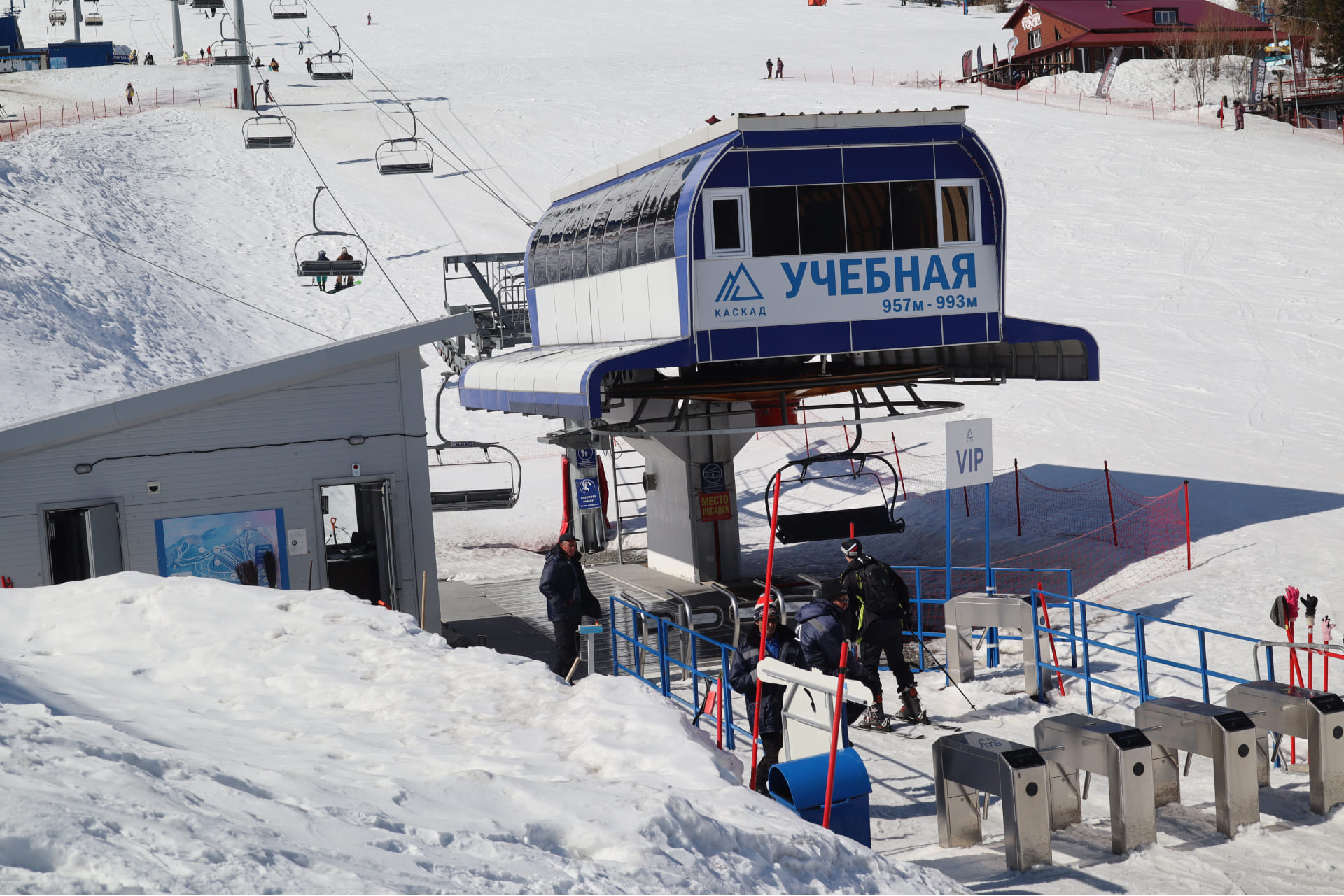 Канатно-кресельная дорога «Учебная» расположена в секторе «А», в пологой части трассы «Лоб». Это четырехместный кресельный подъемник с пропускной способностью 1500 человек/час и перепадом высот 260 метров.