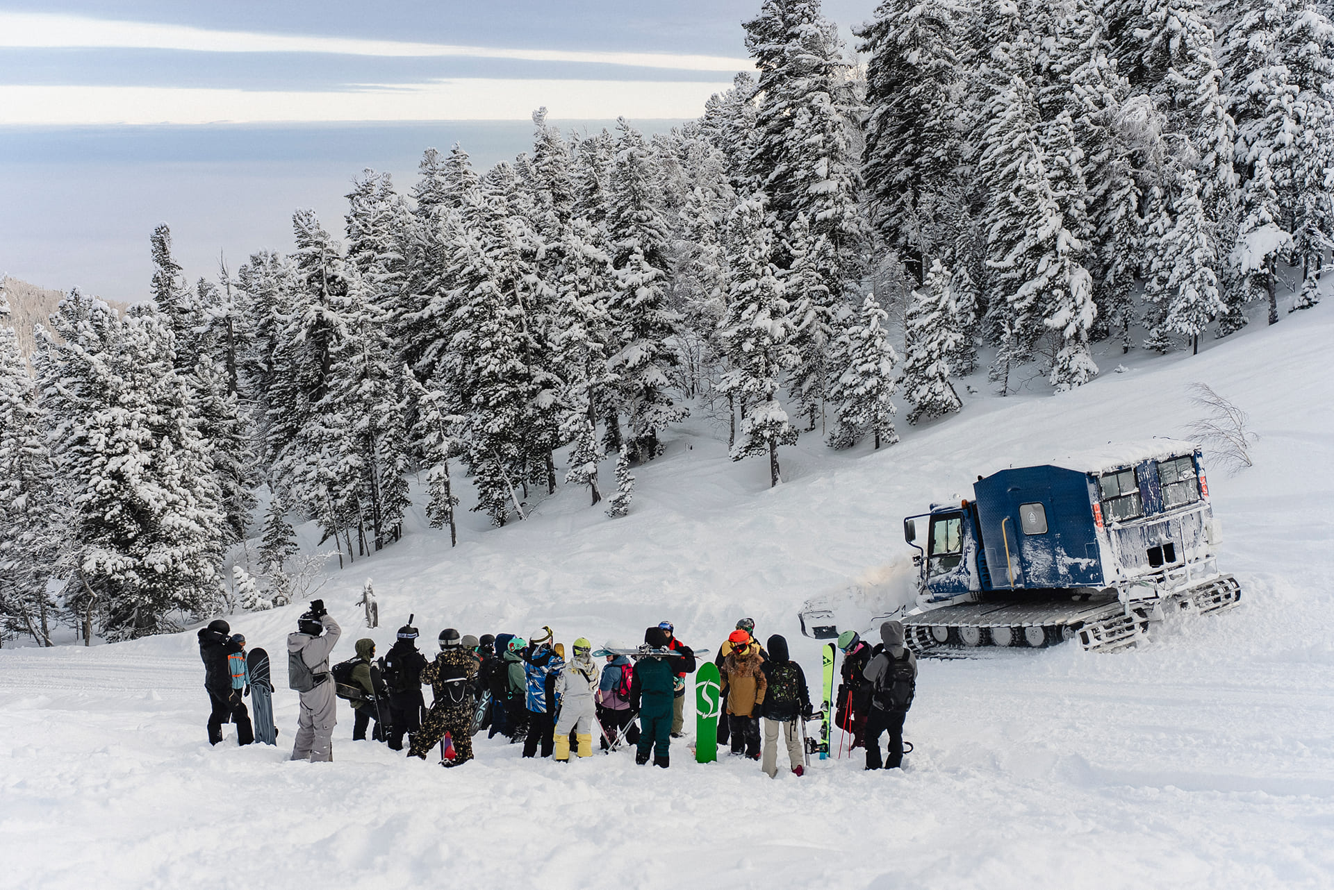 Катание пройдёт по нетронутым местам с самым пухлым снегом в сопровождении опытных гидов. Всем участники тура выдаются лавинные датчики и средства радиосвязи. Это не только экстремальное катание, но и увлекательная обзорная экскурсия на снегоходе или ратраке по горам Сибирской снежной Горной Шории — всё это делает программу незабываемой!
