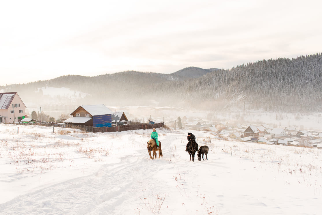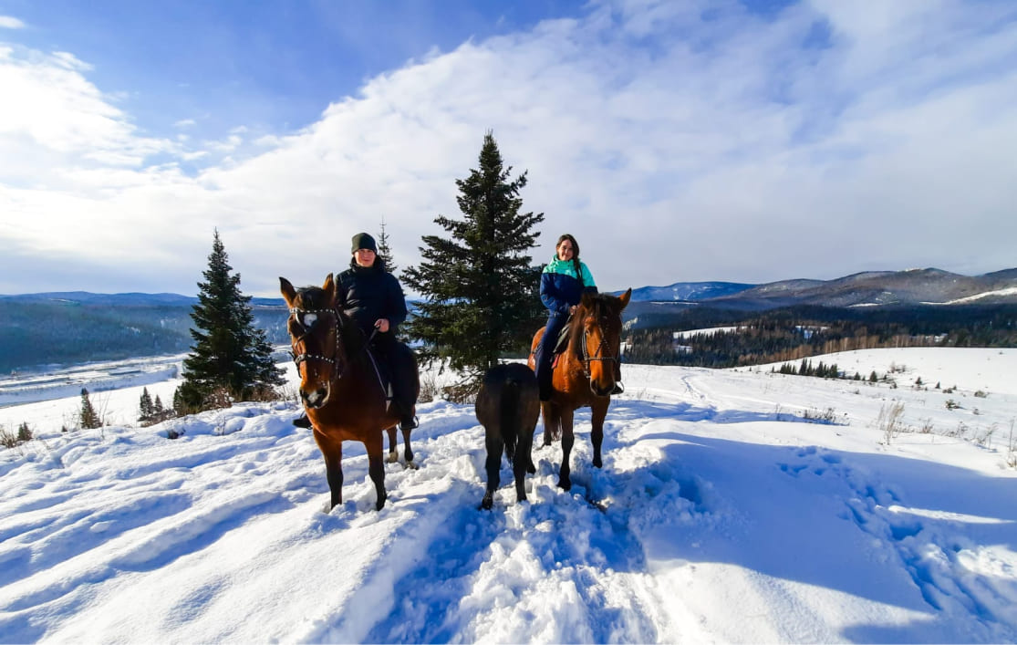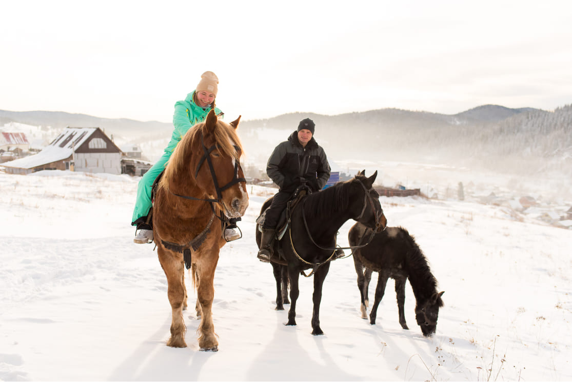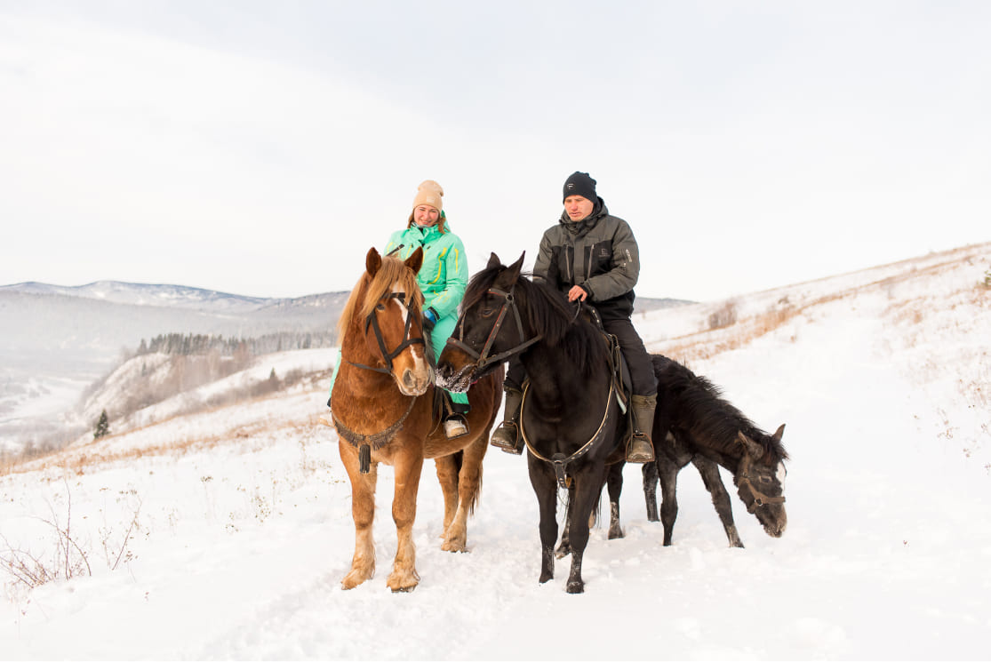 Добрые, обученные лошадки приглашают на прогулки по зимним сказочным тропам в сопровождении опытных инструкторов. Снежные горы, обзорные площадки Вас сопровождают юные жеребята