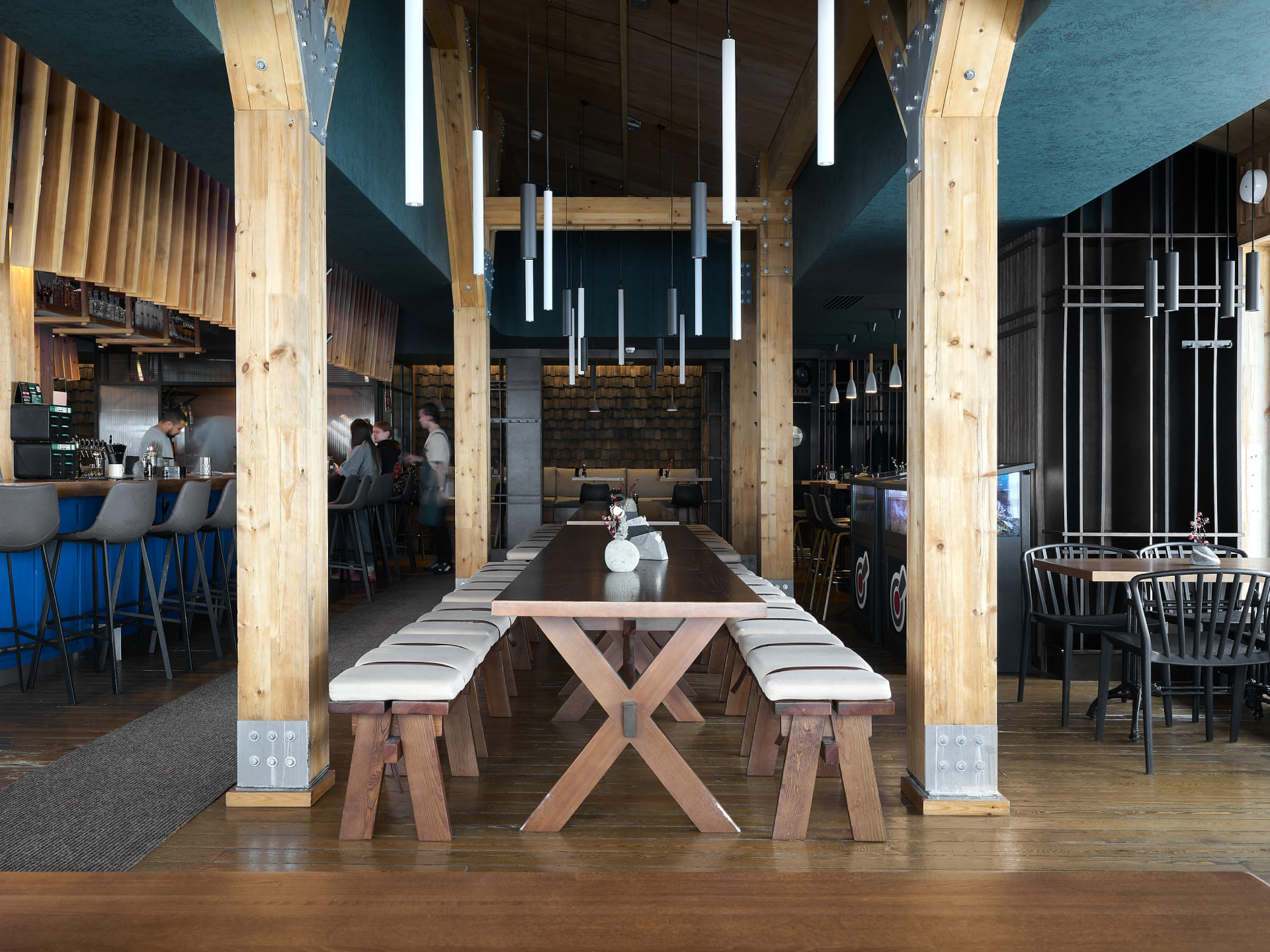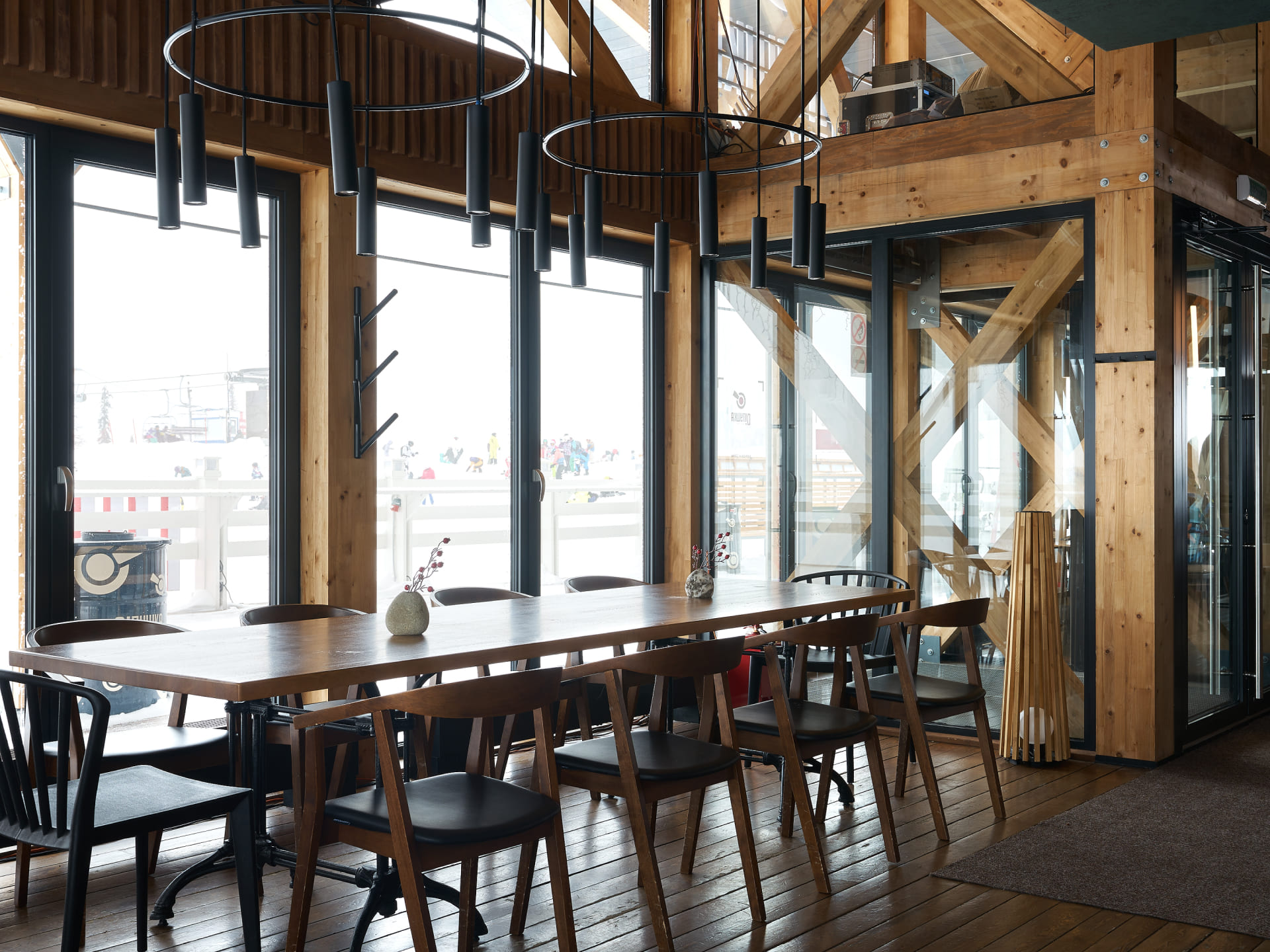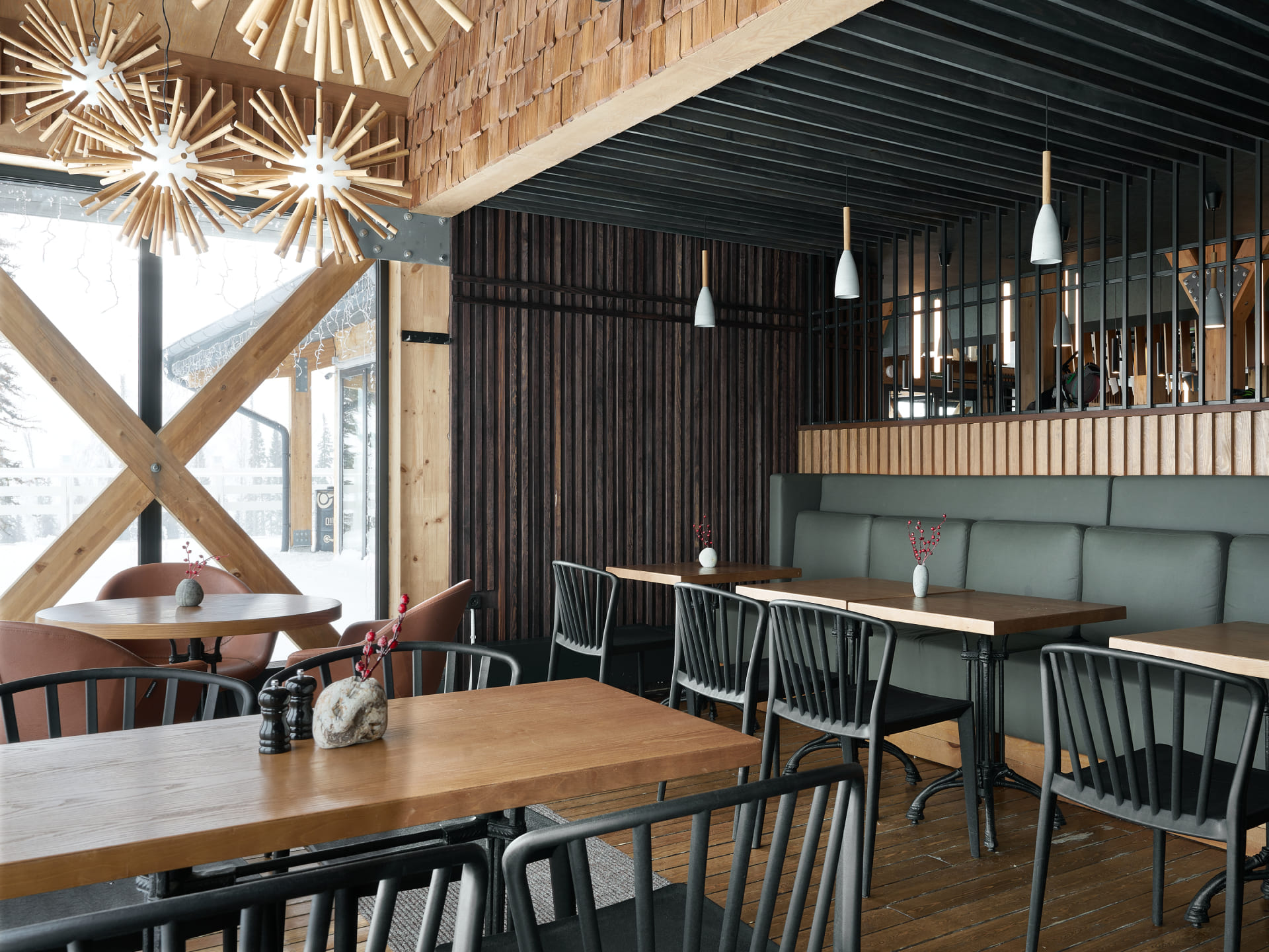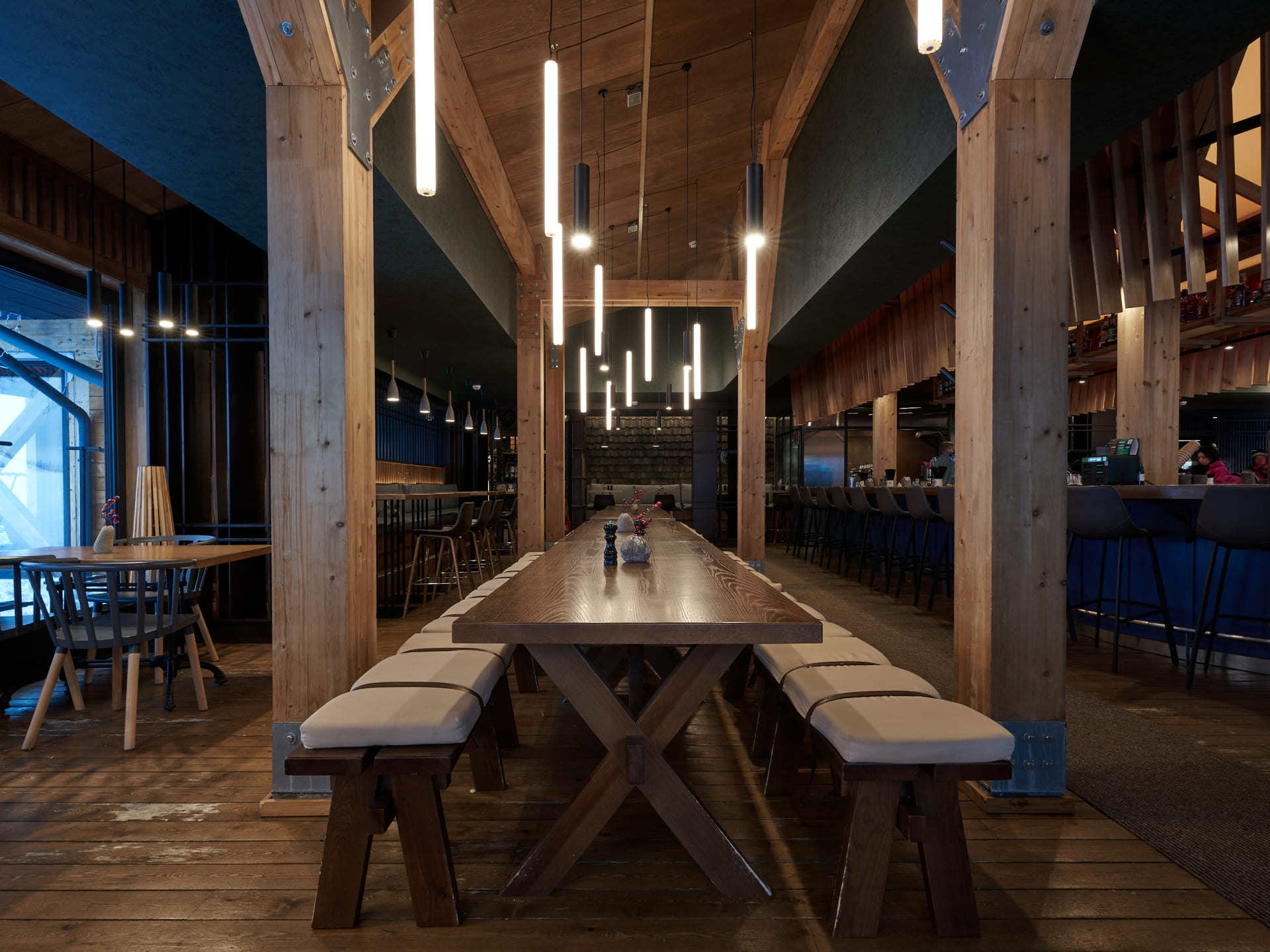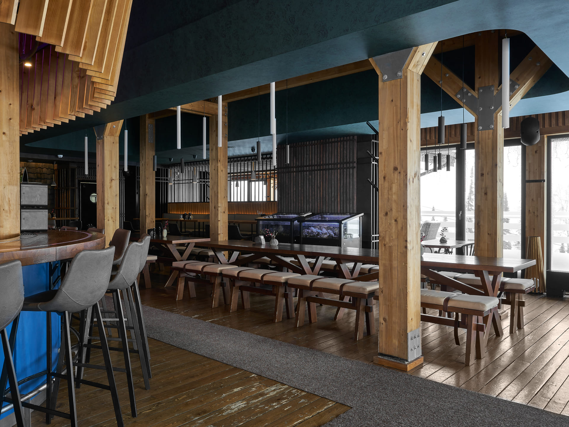 Новый концептуальный apres-ski, который удобно расположился на пересечении канатных дорог Запад и Мустаг. Место, которое точно достойно вашего лайка и внимания. Блюда из авторского меню, широкая барная карта, интересный интерьер и аквариум с живыми устрицами и крабами – все это точно оставит вас под впечатлением.