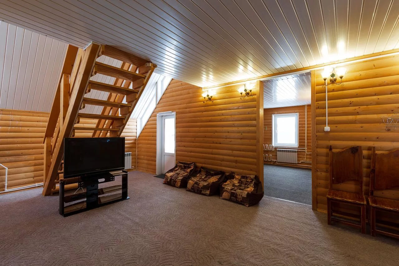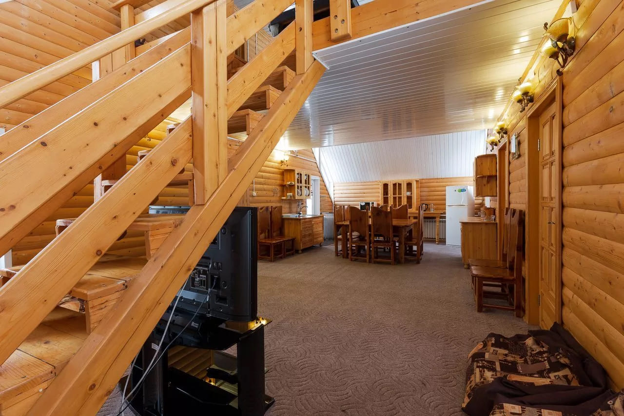 На втором этаже: 2 комнаты в каждой из которой находится 4 односпальных кроватей ; холл с бильярдом.