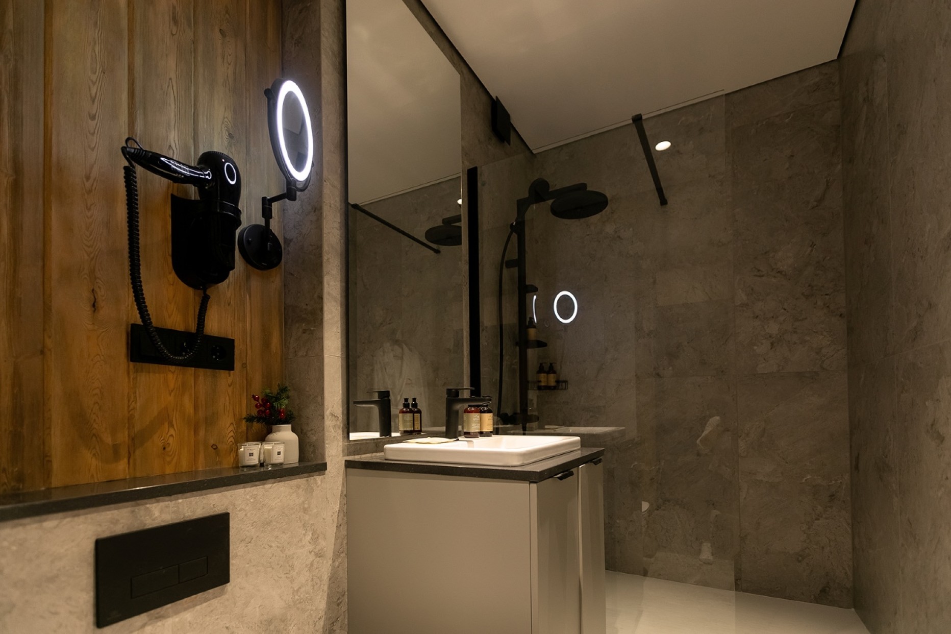 Натуральные тёплые цвета и древесные оттенки создают атмосферу уюта и расслабления — то, что так ценят в сибирских горах после активного дня. Номер отлично подойдёт для отдыха большой семьёй или компанией друзей. Семейный номер площадью 50 м², объединённый из двух категорий «Стандарт» и оснащённый дополнительной межкомнатной дверью, включает две отдельные спальни, две ванные комнаты.